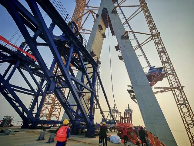 1月6日,随着最后一道锚固工序完成,目前世界最大跨度三塔钢箱梁斜拉桥——青龙门特大桥首对斜拉索成功挂设,为大桥主桥钢箱梁按期合龙奠定基础。
