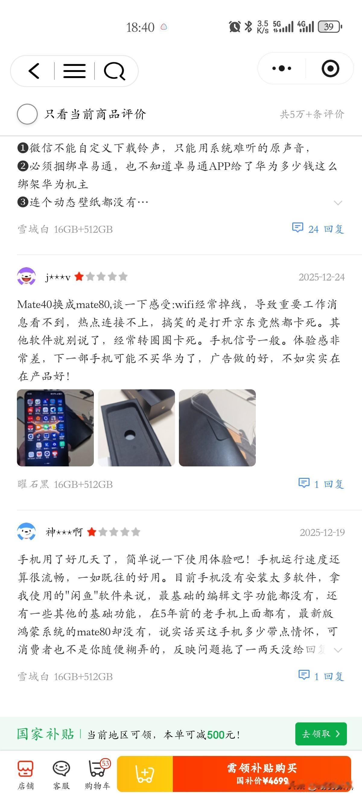 购买mate80系列京东上还是有不少差评的, 差评率非常低, 但是差评的问题各种各样, 最多的是系统及照相, 有卡顿无法使用问题, 其实华为手机已经不错了, 真的有问题官方应及时处理,定点做优化, 差评都是个例,华为的品控还是可以的mate80 mate 80
