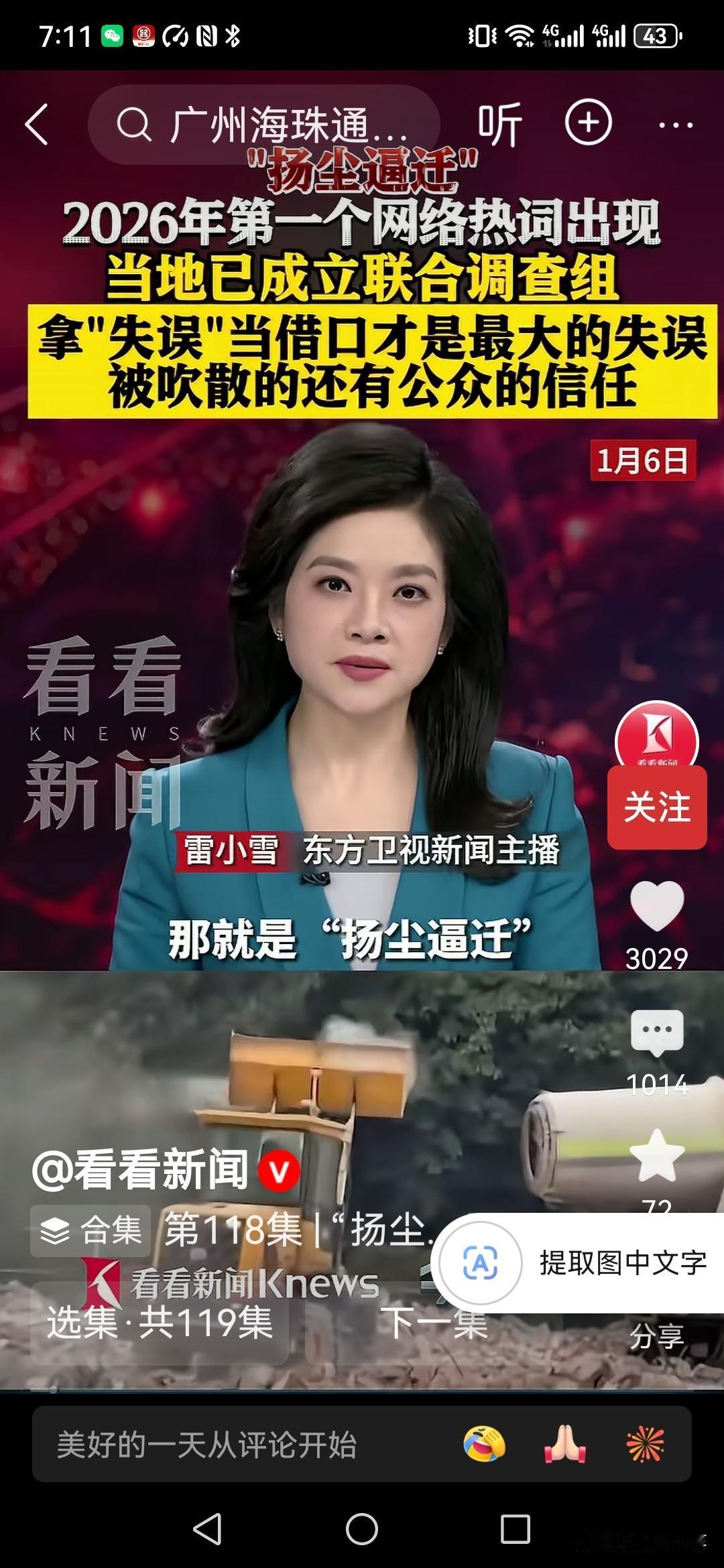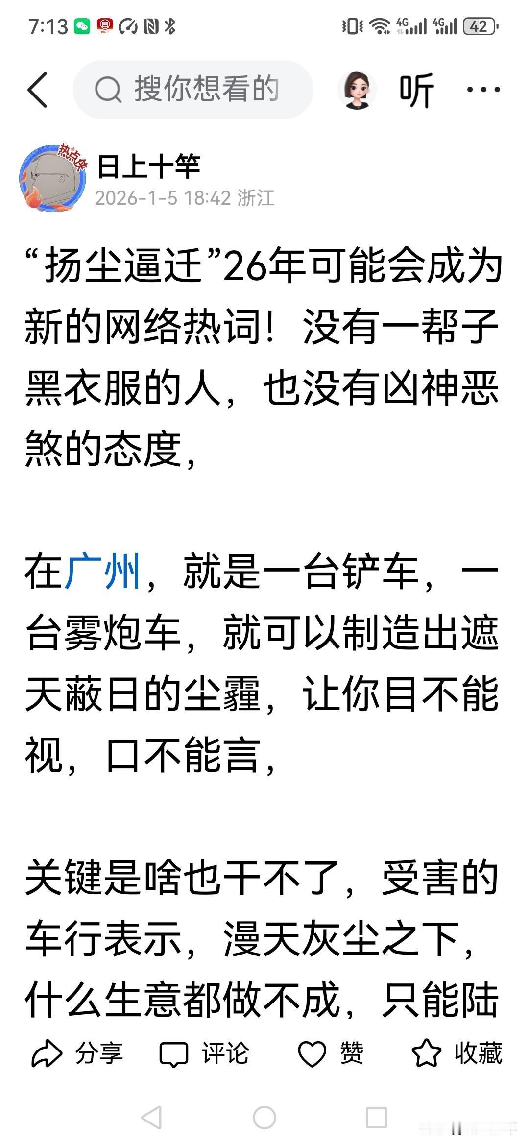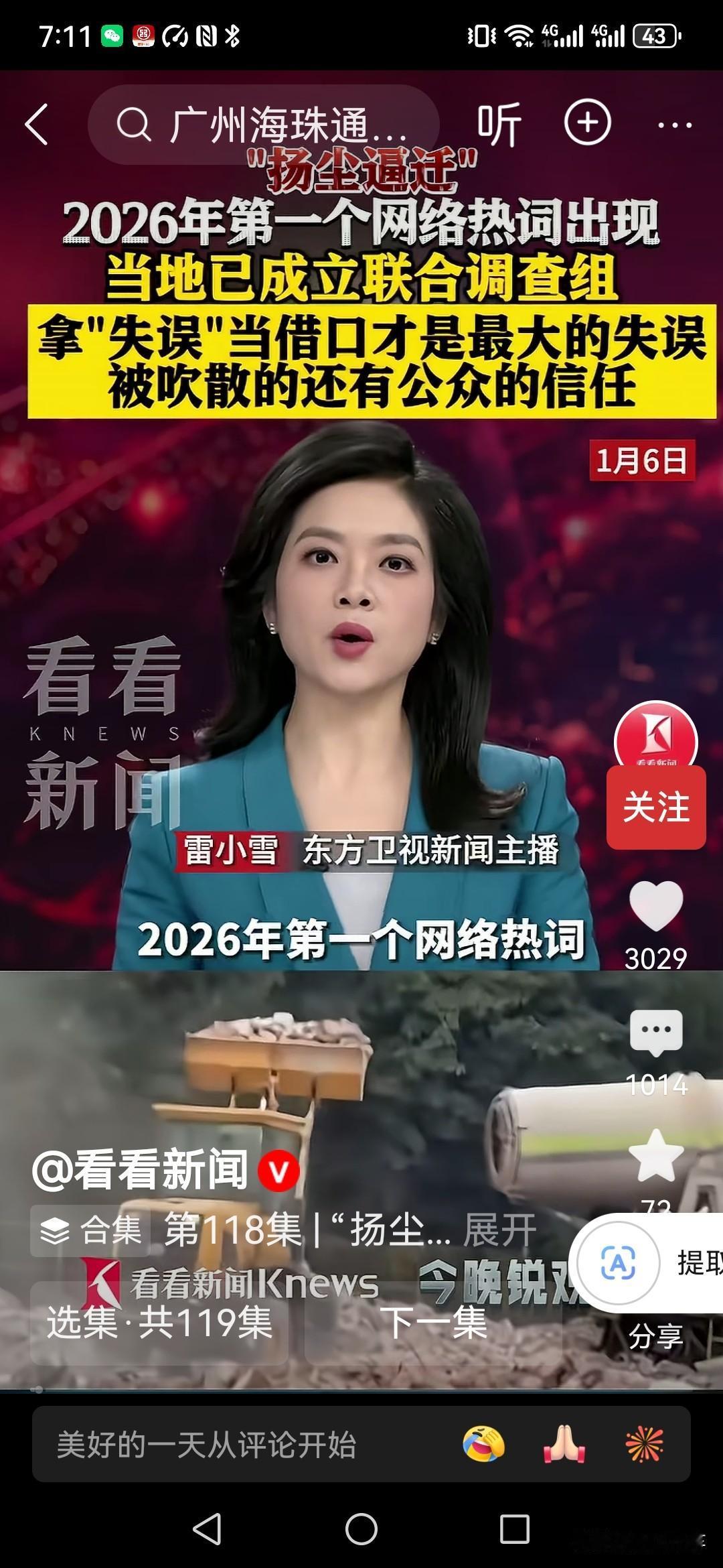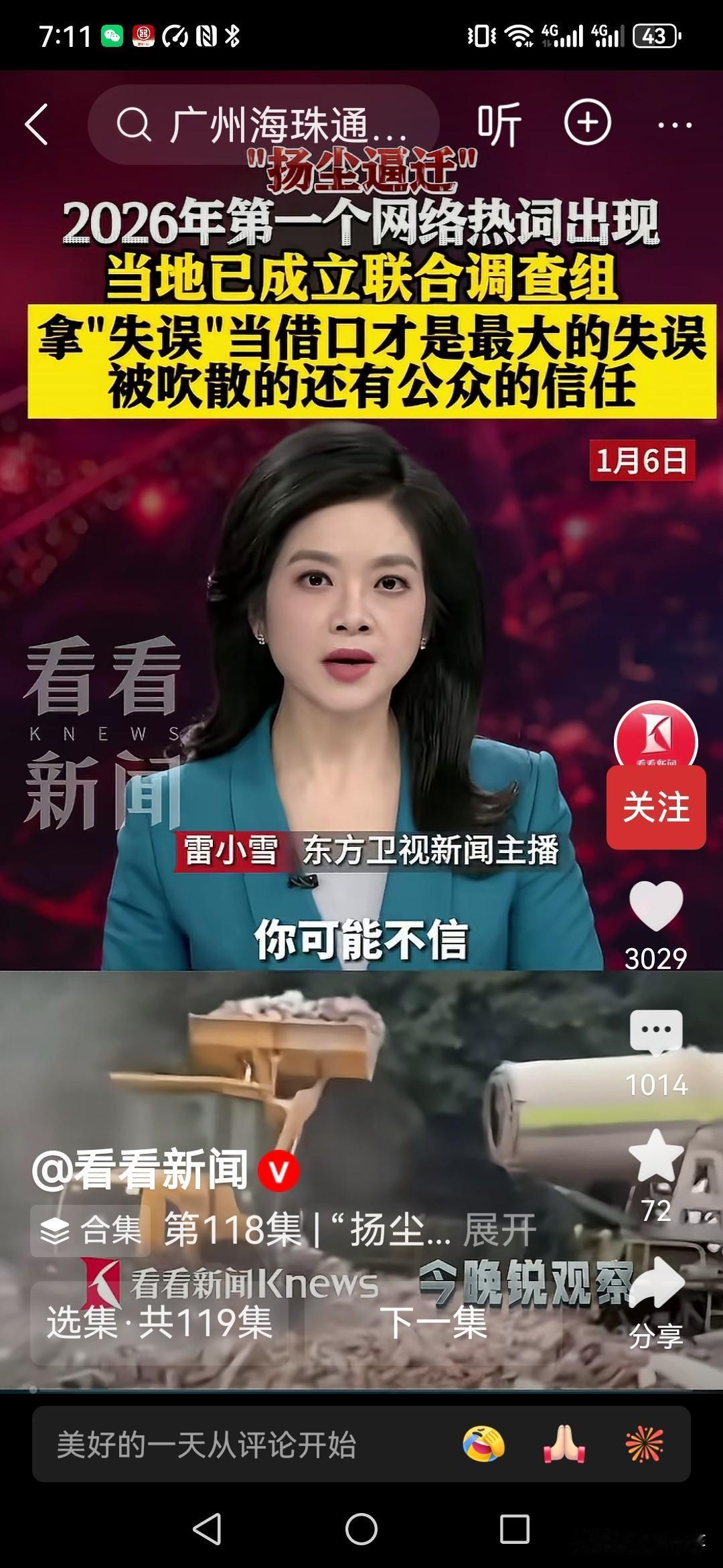 我的预感是不是很准,1月5号当时网上刚发新闻,我就感觉“扬尘逼迁”2026年要火,会成为网络热词,所以简单写了个微头条! 昨天,今天全国各大媒体都在播报这个事件,现在东方卫视已经实锤了,2026年第一个网络热词就是“扬尘逼迁”!