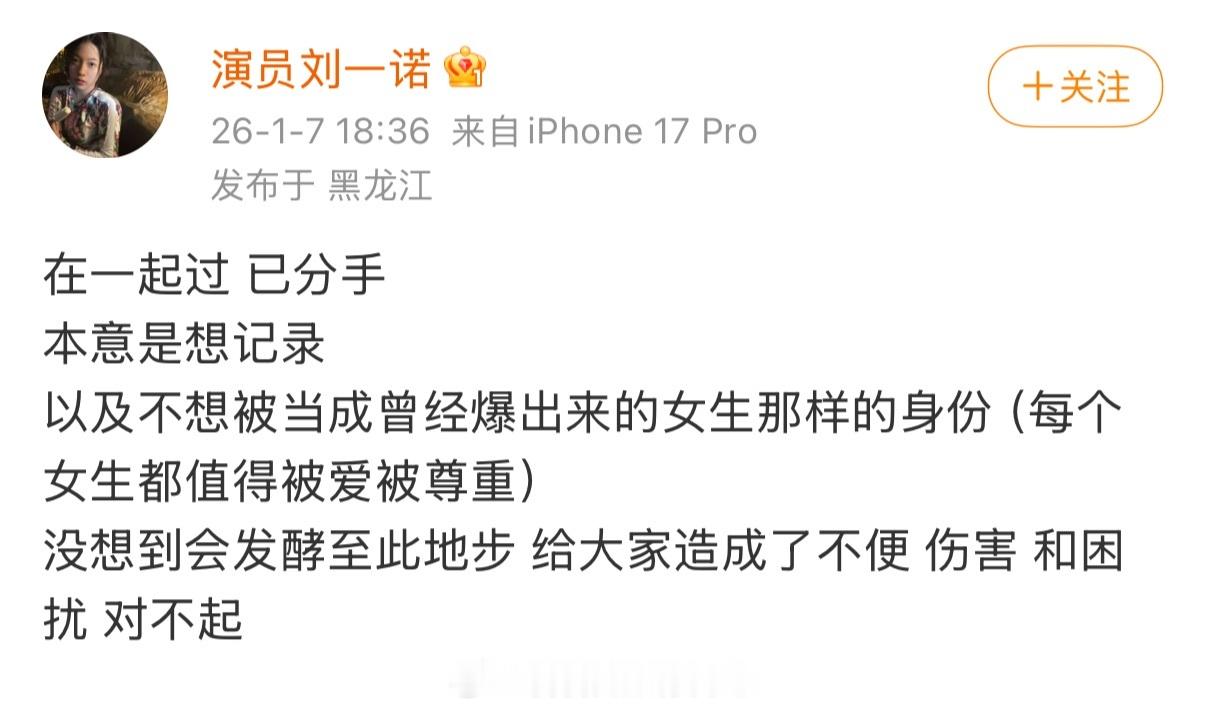 刘一诺发微博了,说他俩在一起过,已经分手!