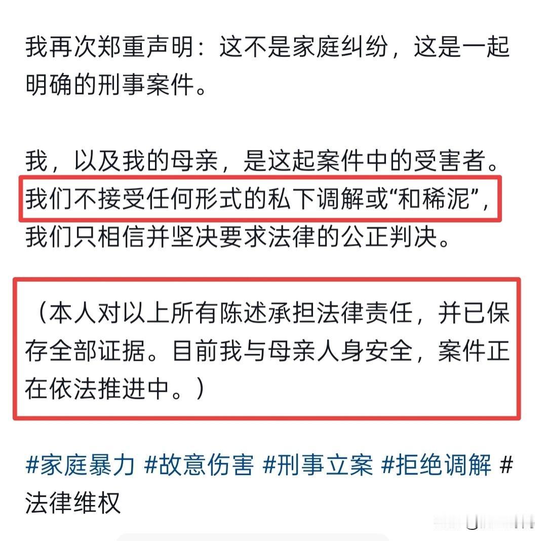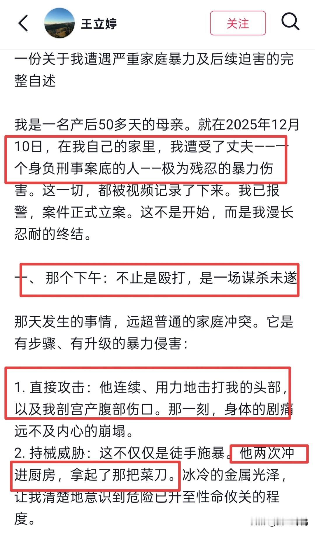 产后被丈夫家暴女子发声: 不是第一次被打,婆婆颠倒黑白,前期公司号靠我播起来,榨干价值后让我滚蛋! 1月7日,王女士在社交账号上发布一段视频,讲述了事件来龙去脉,以及跟丈夫一家人的关系,看完后,我觉得王女士这个人有点烂漫天真。 王女士家境不错,兄弟姐妹都是有编制的,今年26岁,跟丈夫古某是在2024年经人介绍认识的,在一起没多久就被古某殴打了,直接怀孕后也有被打,但她都没有逃离甚至还领取了结婚证。 直到2025年10月16日生下一个儿子,于12月10日被家暴,一共被殴打6次。 这次,王女士真的是怕了,不但被丈夫连续重击头部,还被扯着头发摔打在地上,用脚狠狠踢她剖宫产腹部伤口。 而她母亲上前阻拦将她抱在怀里,她的丈夫都不停手,拖拽丈母娘3米远去厨房两次拿刀威胁。王女士母亲哪怕被女婿拖拽致右膝严重挫伤,因极度的恐惧诱发了急性心悸,仍挡在古某面前。 并上前将古某手里的刀夺下来,古某见状再次去殴打王女士,而这个时候王女士已经被打的短暂昏迷在地上。 令人发指的是,王女士被家暴十几分钟分钟,她的婆婆才从房间里走出来,从监控上看,一开始婆婆就知情了,还站在客厅看了一会儿,才回到房间里。 看到王女士被打昏迷,婆婆才上前拉扯儿子声称自己“心脏病发作”顺势躺在地上,这场暴行才终于停下来。 这场家暴对于古某来说只是普通的家庭矛盾,他回应说: 过段时间就和好。 可不是,此前5次殴打王女士,事后多次承诺以及保证下次不会打她了,结果呢?还不是一次又一次实行暴力。 最可恶的还是王女士的婆婆,这次被打的起因就是婆婆,大家都知道产妇月子期是不能吹冷风的,可婆婆不但将卧室里的两台加湿器都打开了(吹着冷风),还每天打开窗户通风,河北张家口冬天都是零下几度,十分寒冷。 王女士穿着羽绒服都冷的受不了,于是让丈夫挪走一个加湿器,但他不愿意。王女士只能自己去挪,结果就被打了。 事发后,婆婆在派出所颠倒黑白,说这一切都是王女士引起的,只是小冲突。 而古某也称: “这次是特殊原因,以后不会打她了!” 更令王女士寒心的就是,她住院十来天,躺在医院不能动弹时,婆家一家人都没有来看过她,哪怕她出院后回家拿东西,涉事女子二人都没有道歉,甚至一句话伤势询问都没有,一开口就是对她一顿指责,说她大惊小怪干嘛! 所以,王女士受到这次深刻的教训,坚决提出离婚,不但追究古某的刑事责任,并称: “不接受任何形式的私下调解或“和稀泥”,坚决要求法律的公正判决!” 王女士还透露古某早有“刑事案底”,她结婚后才发现此事,“而且前期公司号也是靠我播起来,榨干价值后让我滚蛋!” 古某是某某品牌服装公司的老板。 目前,该总公司尚未回应,但网友的“抵制”已让其压力倍增。王女士说,“我希望他为自己的行为付出代价,不光是法律上的,还有工作、名声上的。” 网友说: “55天剖腹产刀口啊 怎么忍心的 ,一定要严惩!!” 对此,你怎么看?
