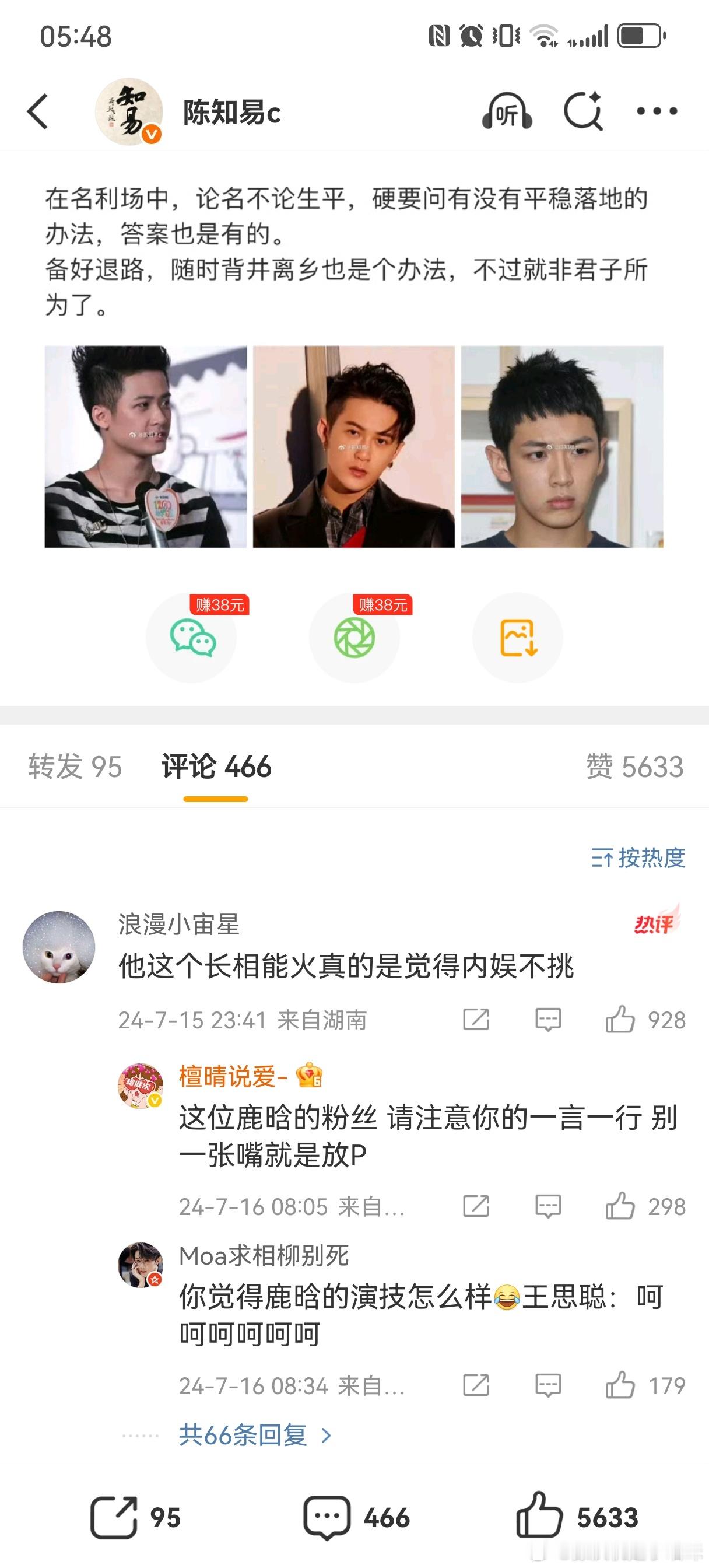 檀健次 刘一诺有个👀相的,涛过檀健次,结果鹿晗粉嘲檀健次,两家还对线了现在这两人难兄难弟的 👀相的实绩有陈飞宇,李易峰,邓伦,