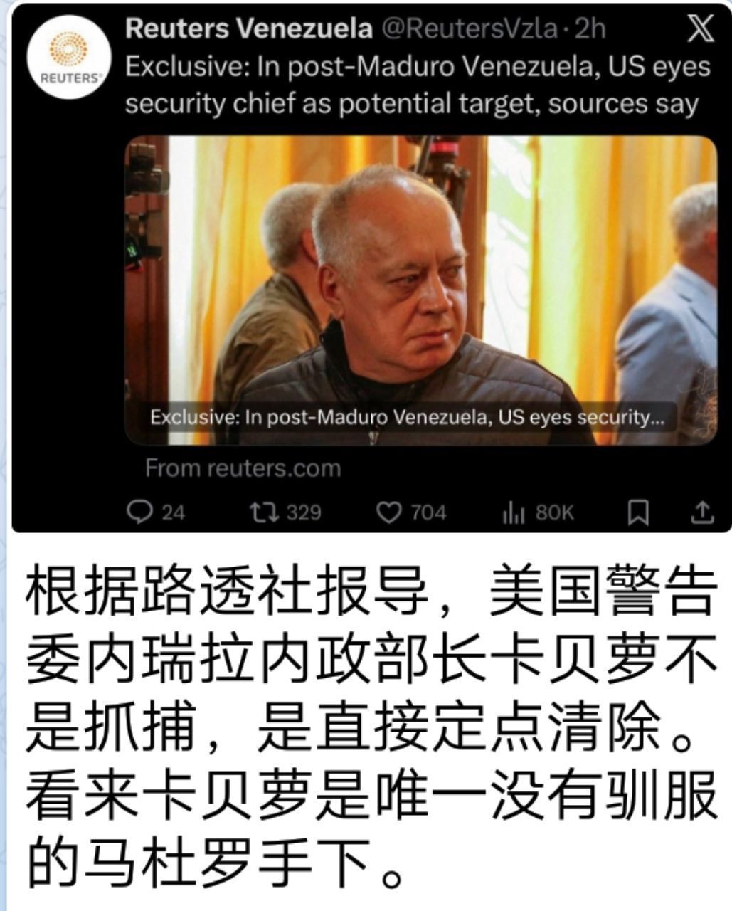 俄罗斯政治家杜金说,如果这次委内瑞拉沦陷,中国袖手旁观,那么下一个遭殃的将是中国
