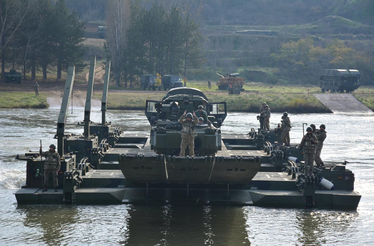 土耳其第一装甲旅进行渡河训练,话说我军现在还有坦克潜渡的训练么,好像一直没见过