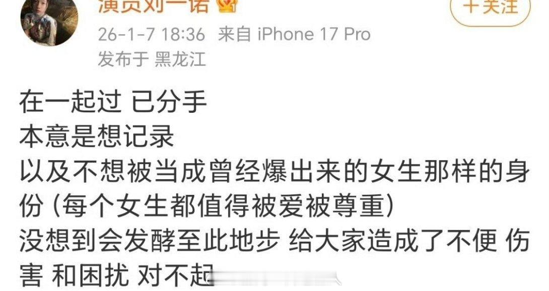 刘一诺说在一起过,现在分了,分都分了怎么还发那些似是而非的话,真的不是蹭流量来的吗刘一诺演过长相思