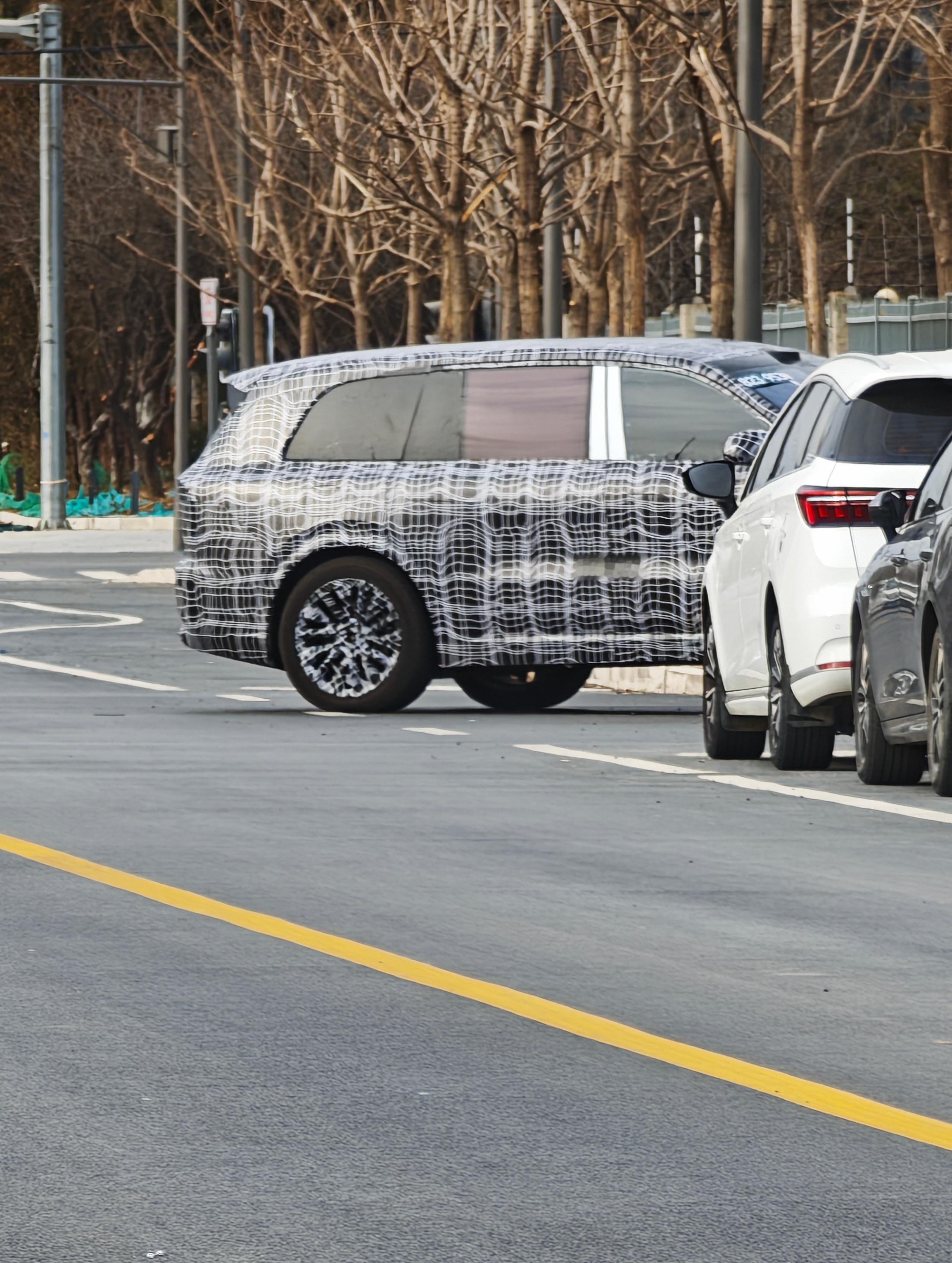 路遇全新理想L9,车尾线条明显更加有棱角而且看样子,后两排车窗应该有电致变色玻璃