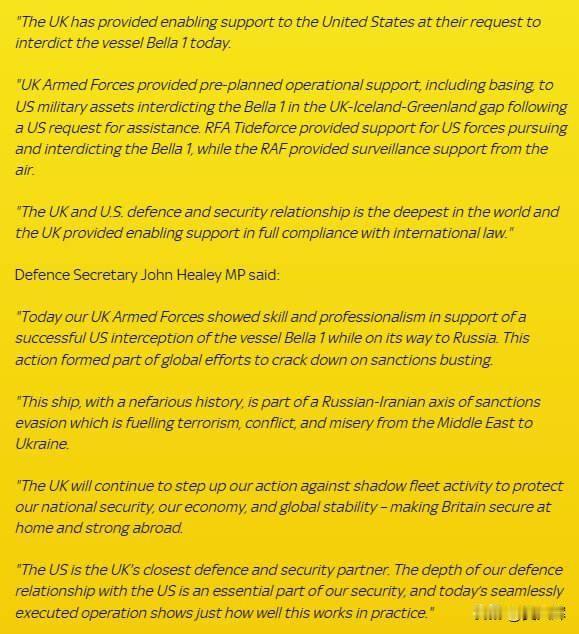 俄罗斯外交部要求美方人道对待被扣押油轮“马林纳”号全体船员 俄罗斯外交部发言人表示,莫斯科正密切关注美军登上悬挂俄罗斯国旗的“马林纳”号货船一事的进展。俄外交部要求美方确保对船上俄罗斯公民给予人道且有尊严的对待,保障其各项权利与利益。 俄外交部强调,美方不得阻挠被俘油轮船员尽快返回祖国。此项要求的提出,是基于俄罗斯交通部已正式确认该货船在大西洋中立水域被扣押的事实。 美国国防部长赫格塞斯就此次行动发表评论时称,美方将延续对“影子船队”的封锁政策:“只有符合美方规定的合法能源贸易才会被允许”,这一表态也印证了美方在制定世界海洋规则上所采取的单边主义立场。 英国也参与了此次对“马林纳”号的追踪与扣押行动。英国国防部明确表示,英方出动了侦察机并开放本国空军基地,为美军的行动提供支持。