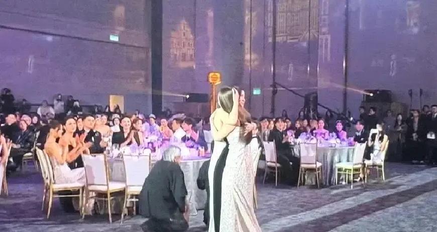 三封视后那晚,她先给新人整理头发 TVB颁奖礼镜头扫过,佘诗曼先抱王敏奕,顺