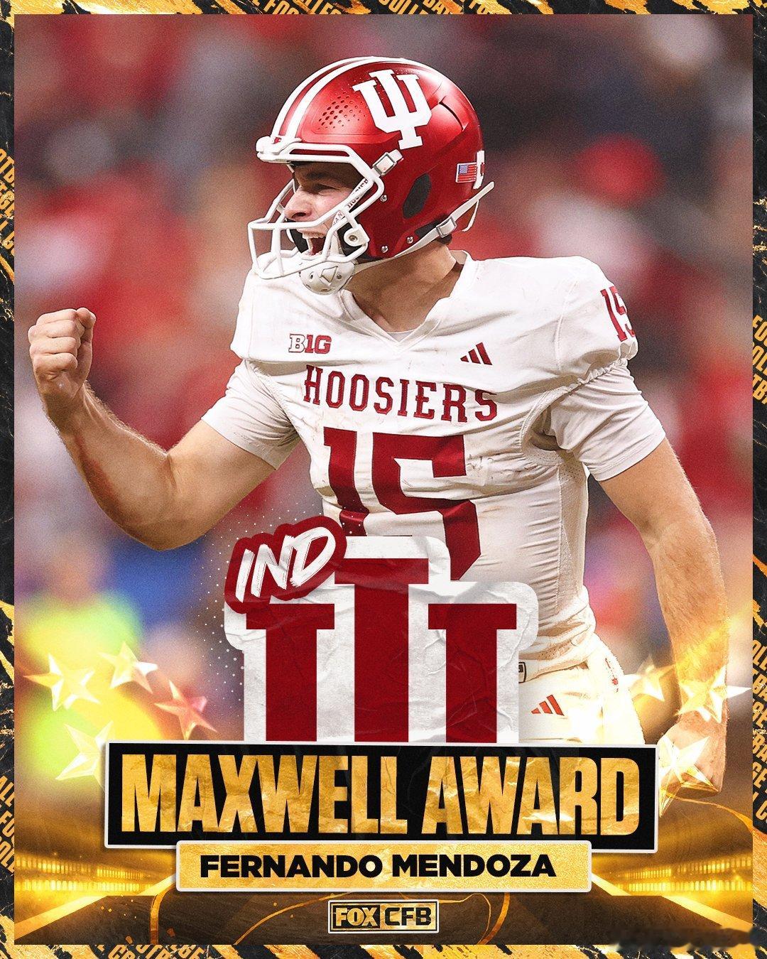 2025年Maxwell Award(全美年度最佳球员)获得者印第安纳大学四分卫Fernando Mendoza。
