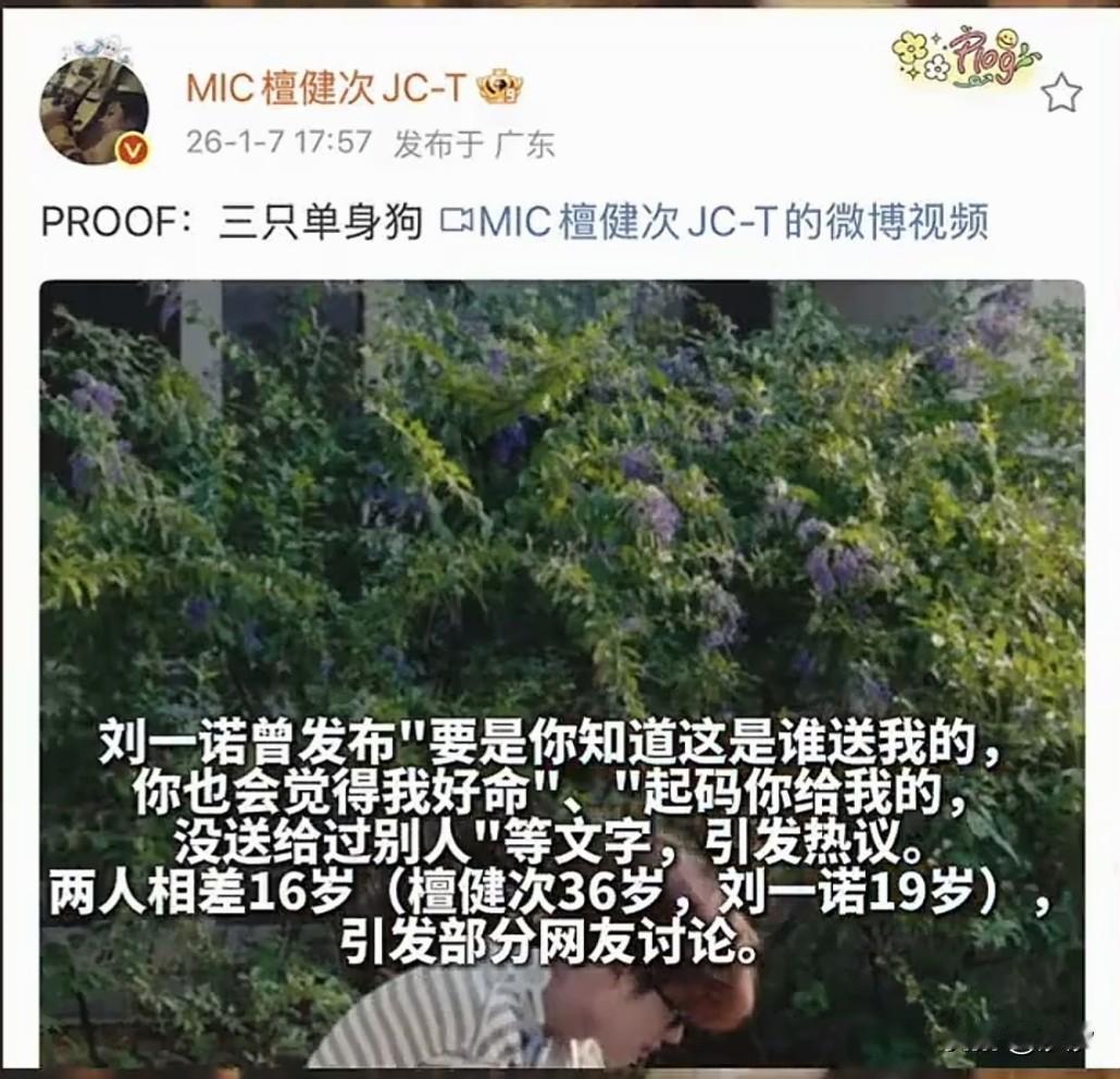 万万没想到檀健次也塌房了, 她的前女友刘一诺爆料, 在一起过已分手, 本意是想被记录, 没想到被当成曾经爆出来的女生那样, 直指前些天的司晓迪, 话虽如此,明眼人都知道, 这就是为了炒作, 该女生身高1米65, 是北京电影艺术学院的表演生, 每天就是拍一下自己的宿舍生活, 令人关注的是她今年才19岁, 原来檀健次也喜欢年轻的女生, 男人至死是少年, 刘一诺晒出的很多张图片, 与檀健次家中以及生活中的物品完全一致,可以看出两人确实曾经在一起过, 谁也没想到所谓的正能量顶流, 居然私下也玩的这么花, 还真是知人知面不知心, 娱乐圈的事儿假亦真时,真亦假, 36岁的他和19岁的她还真是老少年恋! 大家对于明星这样的恋情怎么看? 檀健次 刘一诺回应与檀健次恋情:已分手