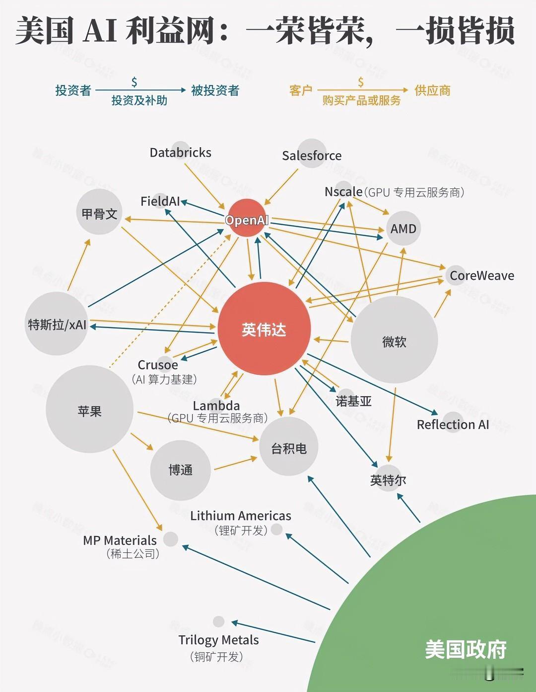 2025年全球资本市场AI大年,美国AI企业抱团联合打造AI霸权,以OpenAI模型和英伟达算力为中心建立多家科技公司参与的应用模式,所以英伟达成为世界第一市值企业。而2026年必将属于AI应用大年,Google、微软、苹果等AI应用将引爆市场开始普及AI产品走向更大的大众市场,所以未来的市值5万亿美元企业预计也将在这张图中诞生。
