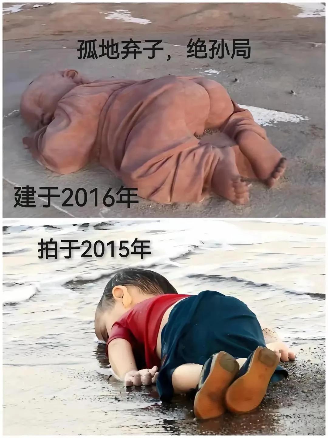 以为只有一个 没想到有这么多 全国到处都有这样名为大地之子的雕塑,发现原形竟和叙利亚沙滩儿童的照片一毛一样[发怒]多地一样的雕塑,应该是一伙邪恶之徒所为,这是近些年文化艺术领域的歪风邪气,崇丑尚怪,而不是崇美尚真, 暗示社会审美越来越低极,雕塑名字很美,因为解释权在他们手里。这是因为文艺,教育战线被人占领了。打着艺术的幌子,侮辱人民百姓!更恐怖的是视而不见的麻木不仁! 国家应出手整治歪风邪气了!