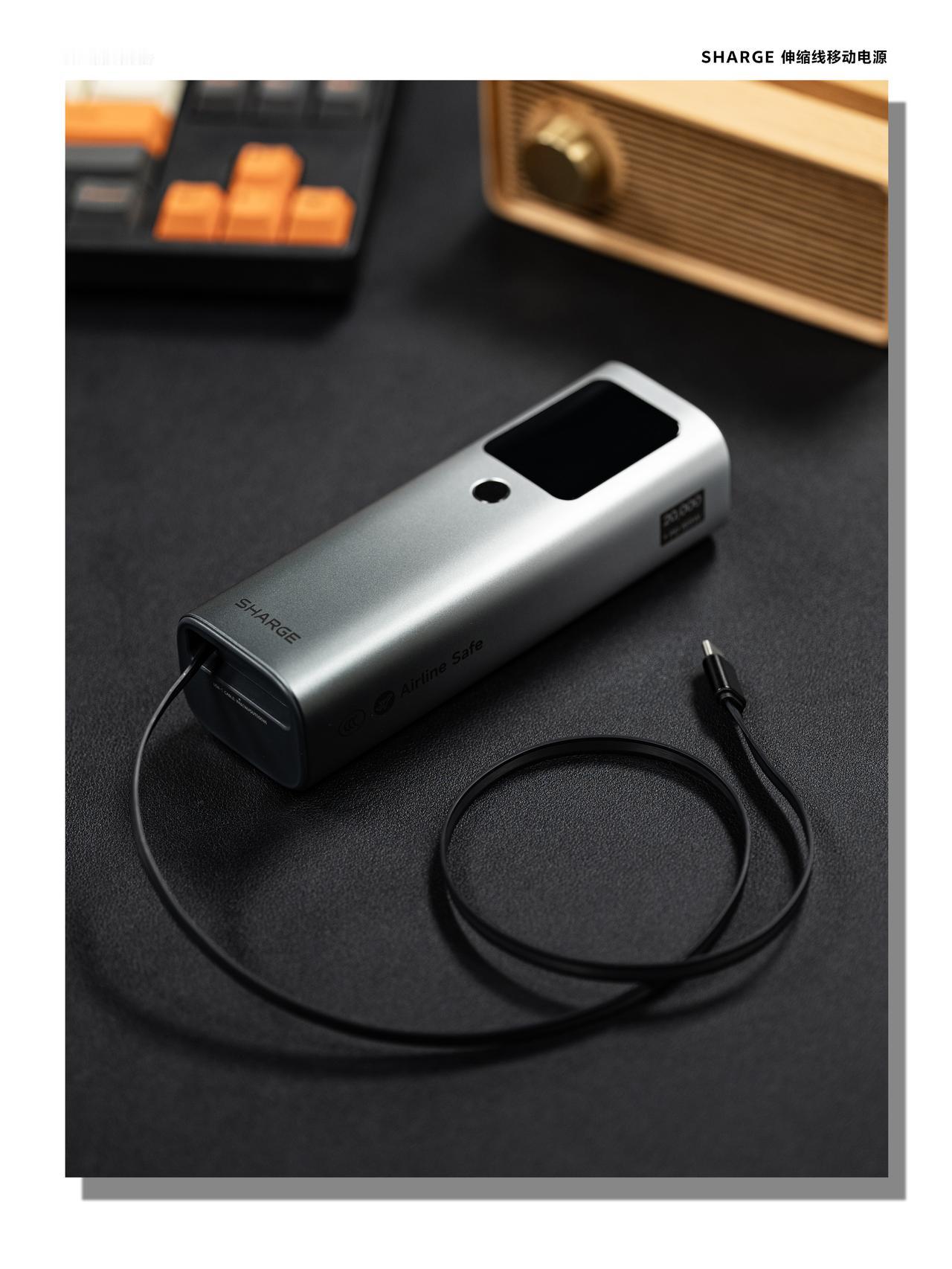 HYK图赏|闪极伸缩线移动电源 外形就是一根简约的长方形能量棒,金属外壳+表面渐变的金属光泽,摸起来金属质感很实,看起来也有高级感。正面带一块智能小屏幕,充电状态一眼就能看清。这代最戳我的是,充电线做了一个伸缩设计,不用额外带线,收纳起也不怕线缠在一起,出行携带很方便。