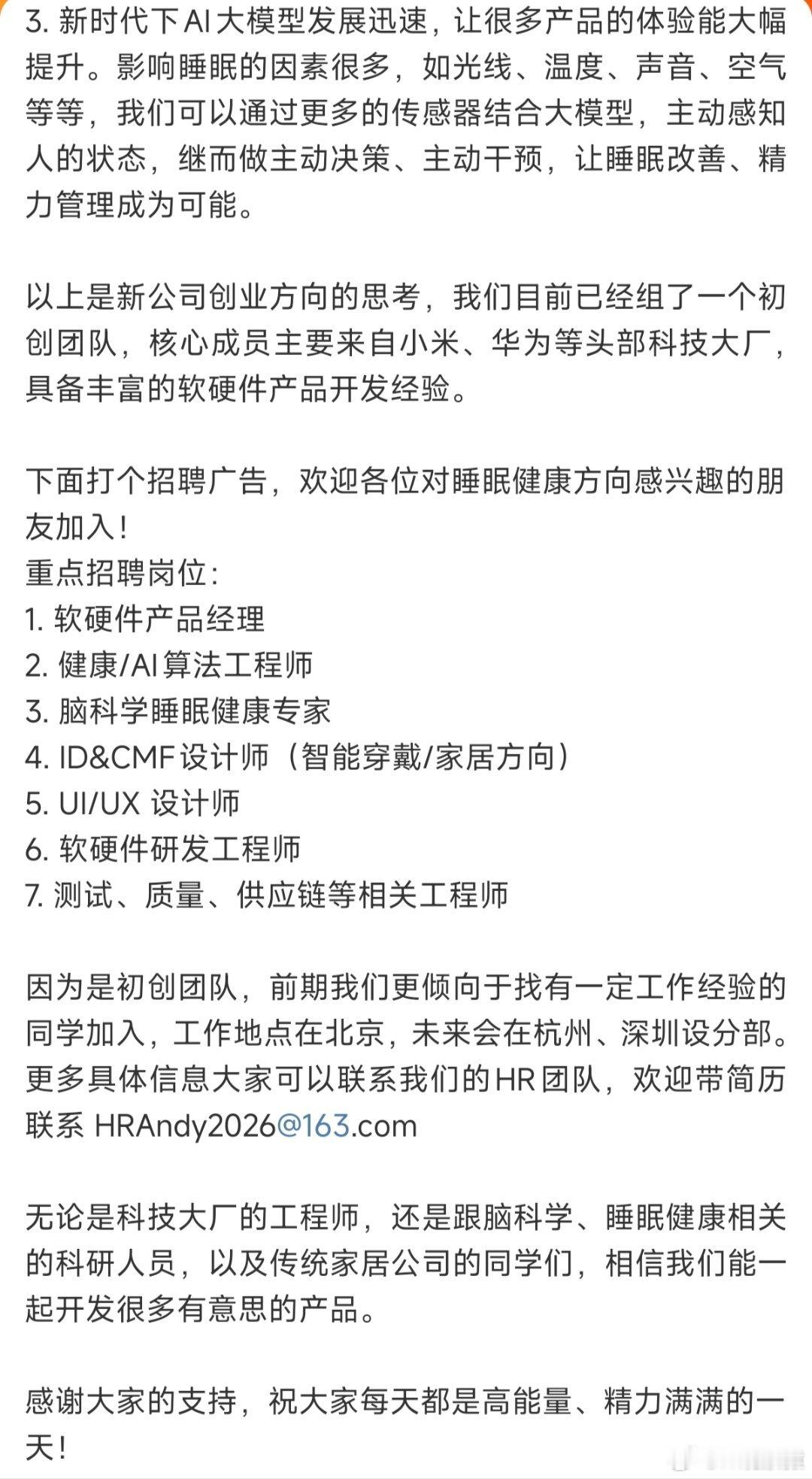 王腾从小米离开后成立新公司王腾宣布成立新公司“今日宜休”,主打睡眠健康相关产品,并在微博公开招聘。