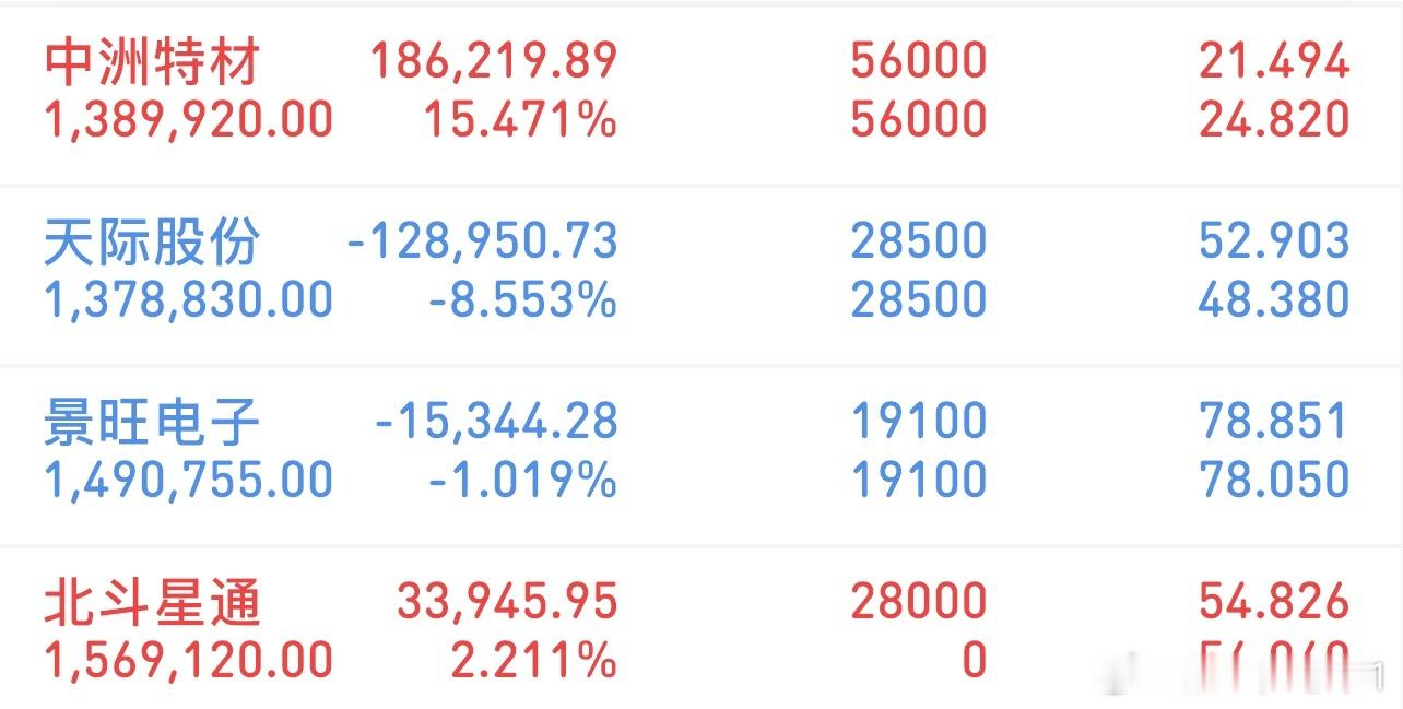 挑战300万冲刺3000万(1/8记录)新进:北斗星通格局:景旺电子格局:天际股份格局:中洲特材特别声明:我开实盘的目的主要是为了记录我对A股走势的思考和研判,不具备投资建议。股市有风险,投资需谨慎!