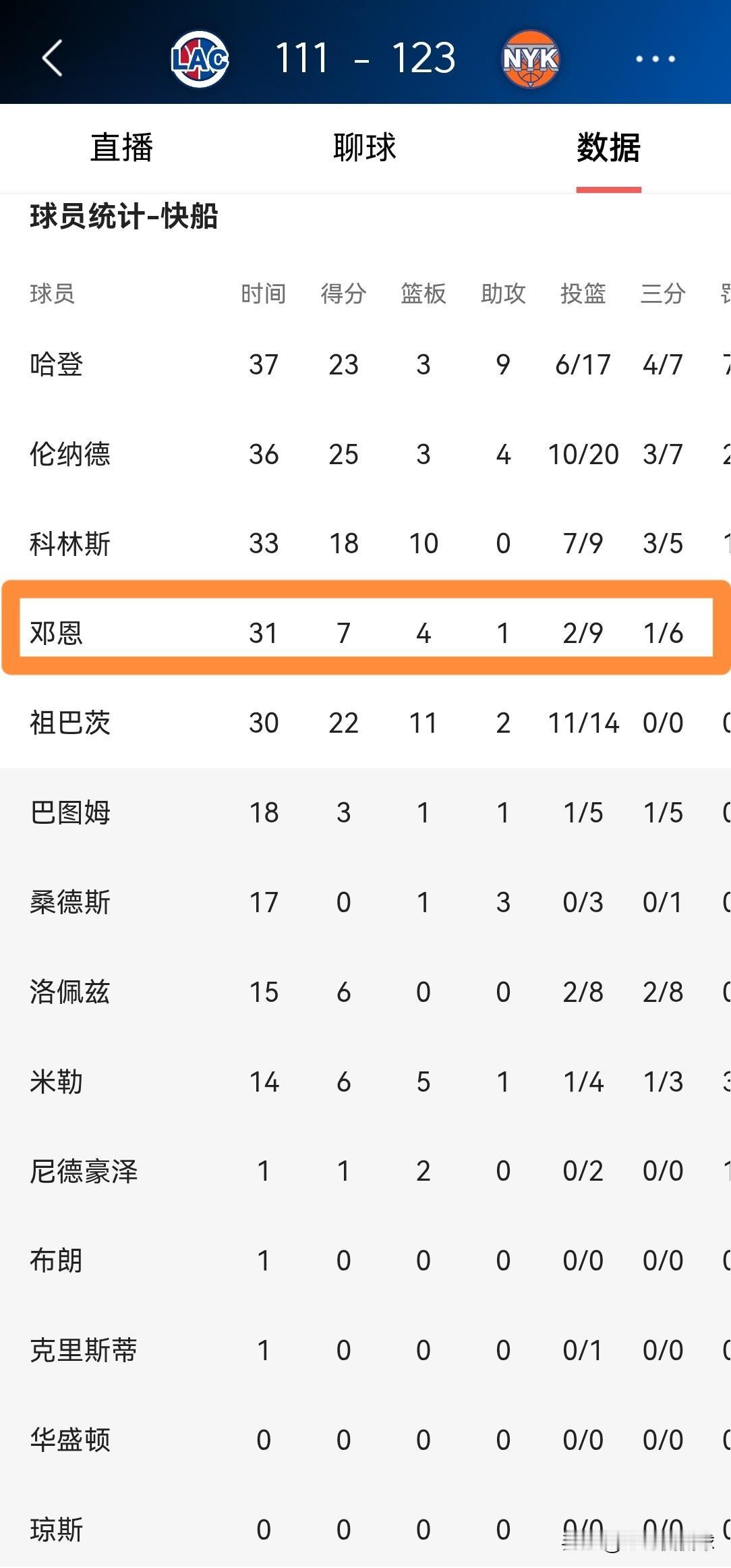 我强烈建议快船立刻交易走邓恩!在今天快船客场以111:123不敌尼克斯的比赛中,邓恩首发出战31分钟,投篮9中2,其中三分球6中1非常低效的得到7分,他的场上正负值为-4。 事实证明,以邓恩的三分投射能力来看,他完全不适合快船,每当伦纳德或哈登遭遇对手的包夹时,邓恩始终无法命中空位三分,这严重的影响了球队的进攻,我建议快船立刻交易走邓恩,从而换来一名具备三分投射能力的球员。