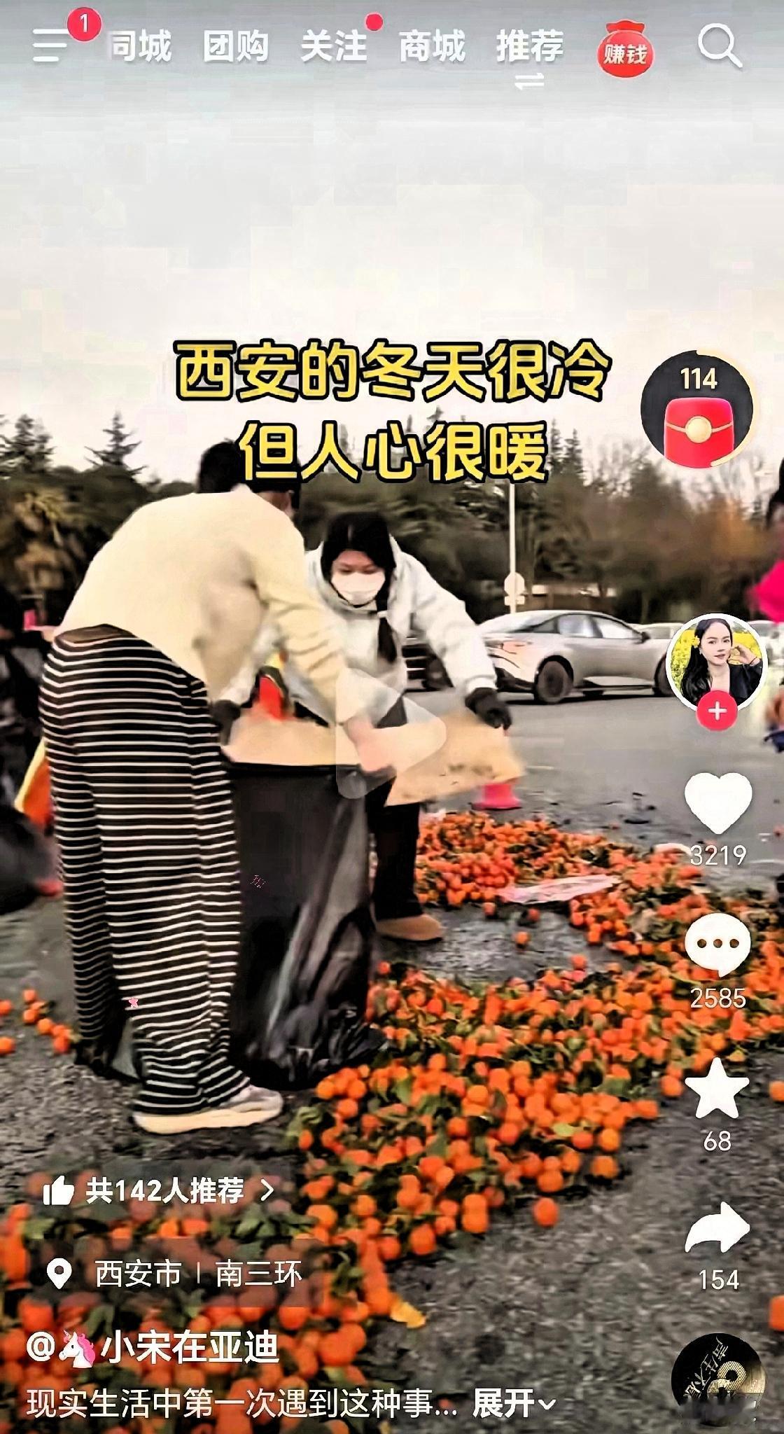 一辆沙糖桔的货车在西安翻车后,200多箱沙糖桔洒了一地,车主慌了,这可怎么办,可下一秒,路过的行人、骑车的市民全停了下来,没人指挥却默契十足地弯腰捡桔、装箱,忙活了近一个小时,捡完默默转身就走,没要一句感谢。 这哪是简单的帮忙,分明是秦人刻在骨子里的热乎劲儿!陕西从不缺这样的温暖,不管是早年铜川村民通宵照看25吨橘子,还是如今西安街头的爱心接力,平凡人自发的守望相助,才是最动人的风景。寒冬再冷,也抵不过陌生人递来的善意,这些不求回报的援手,让城市有了温度,也让善良有了传递的力量。