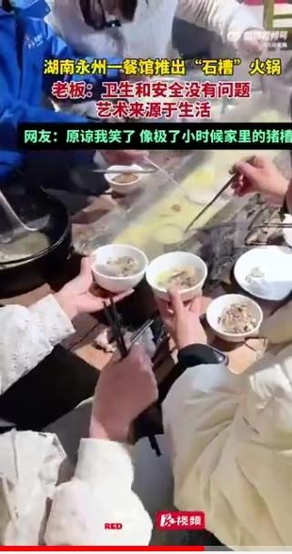 笑不活了,太接地气! 近日,湖南永州一家餐馆老板席先生推出长90公分、宽25公分的石槽火锅,可容纳8人同食,被网友调侃像猪槽子;席先生回应称石槽经抛光打磨,卫生安全有保障,艺术本就来源于生活。 然而,这款“土味”火锅的走红,不止是一次简单的创意出圈。从国际视角看,这种将乡土元素融入餐饮的玩法,正是中国市井美食文化走向多元表达的缩影,区别于西式标准化餐饮的刻板印象。不过,争议声也随之而来,有人觉得创意吸睛,也有人质疑其观感是否影响用餐体验。另一方面,店家的快速回应,也体现了当下餐饮从业者应对舆情的灵活态度。 当乡土元素撞上现代餐饮,是创新还是噱头?接地气的设计能否真正留住食客的胃?未来又会有多少传统物件以新形式走进大众视野?这场石槽火锅引发的热议,其实是一次美食与文化的碰撞,你怎么看?