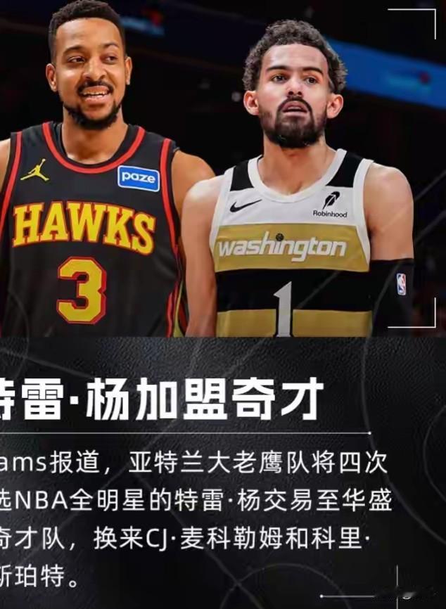 当消息一出,篮球圈瞬间炸开了锅。老鹰用特雷·杨换来了CJ·麦科勒姆和基斯珀特,这