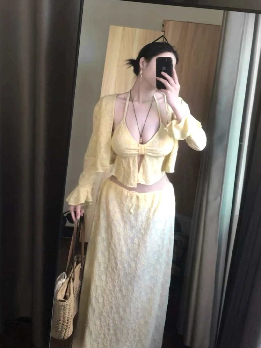 微胖女生天菜!长款开衫+瑜伽裤,显瘦又慵懒的度假感穿搭宝子们!发现一套微胖女生