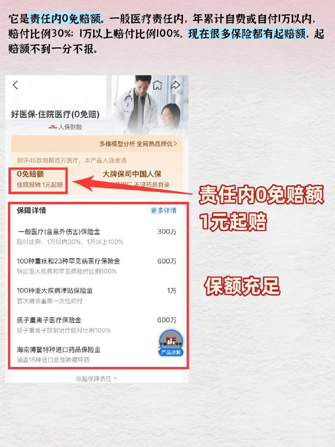 在网上做了很多功课,最终选择了人保财险承保的【好医保·住院医疗(0免赔)】。