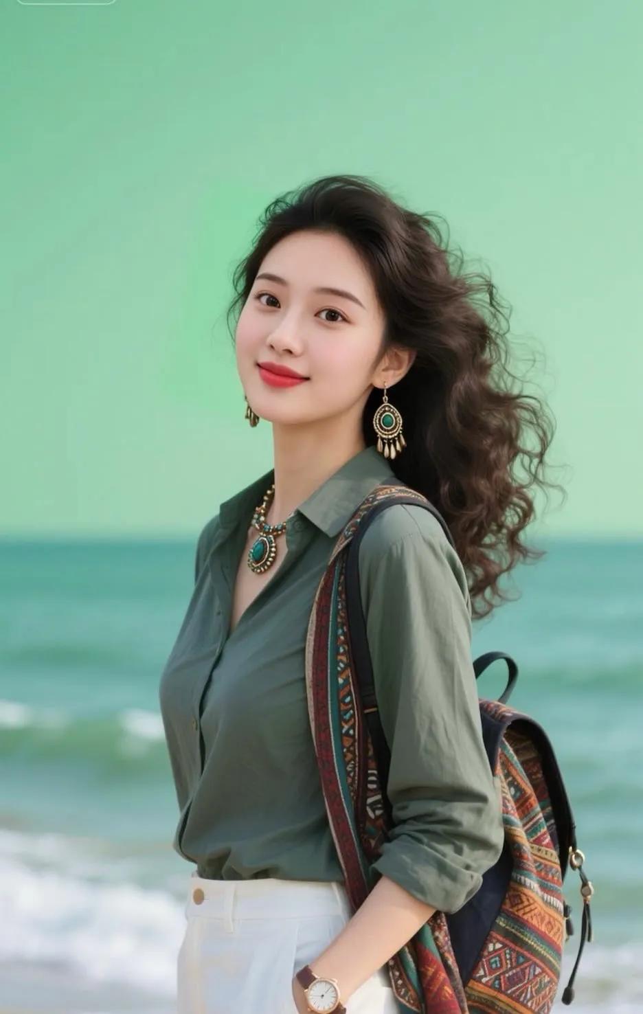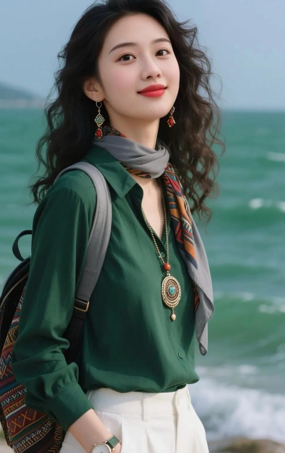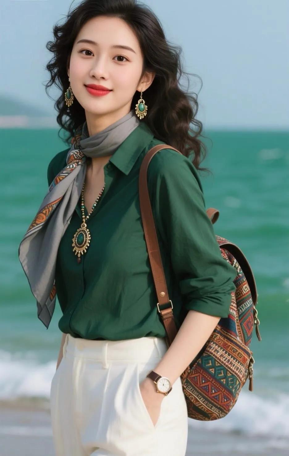 海边漫步,绿意盎然,时尚穿搭,自然清新