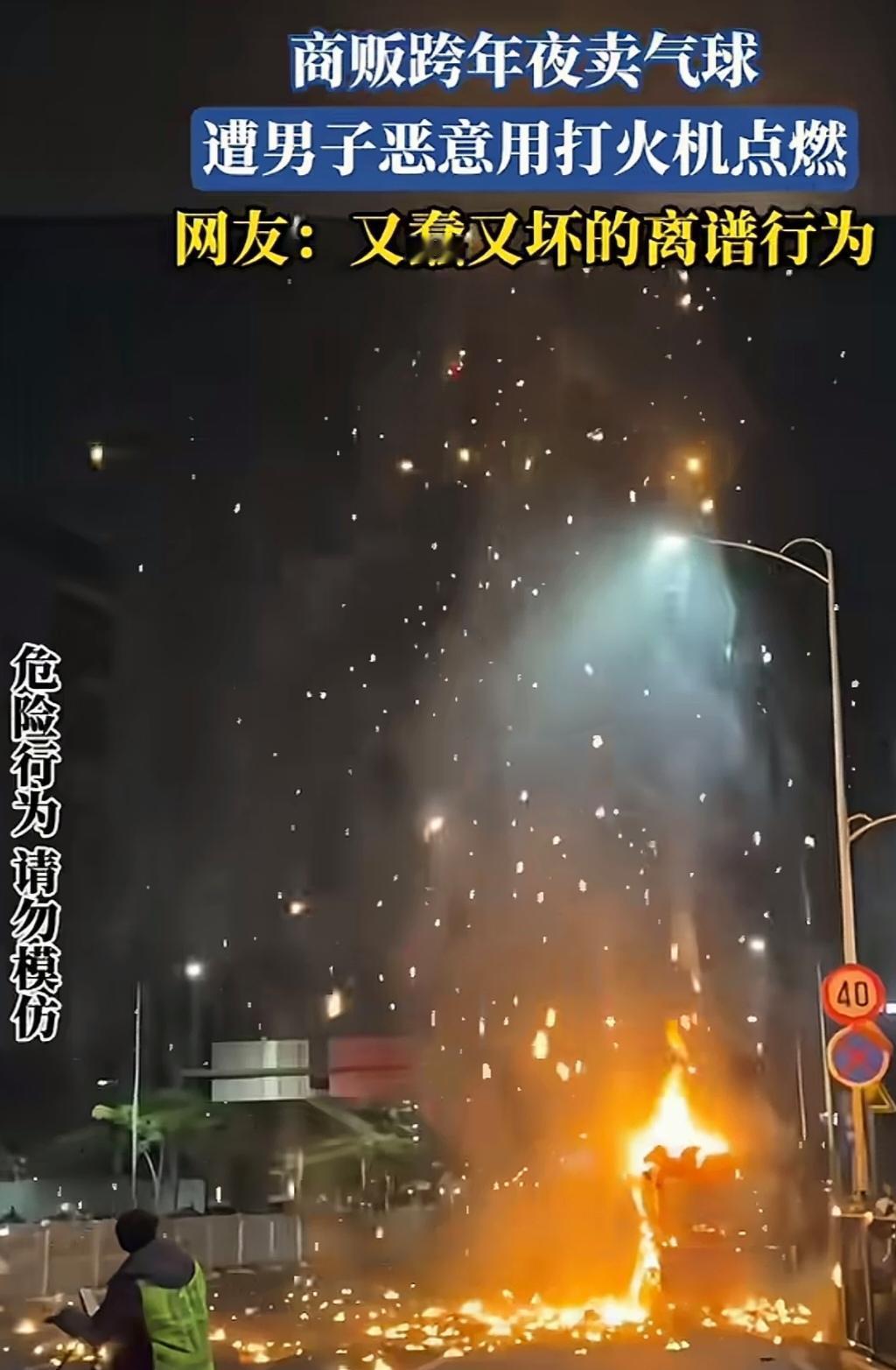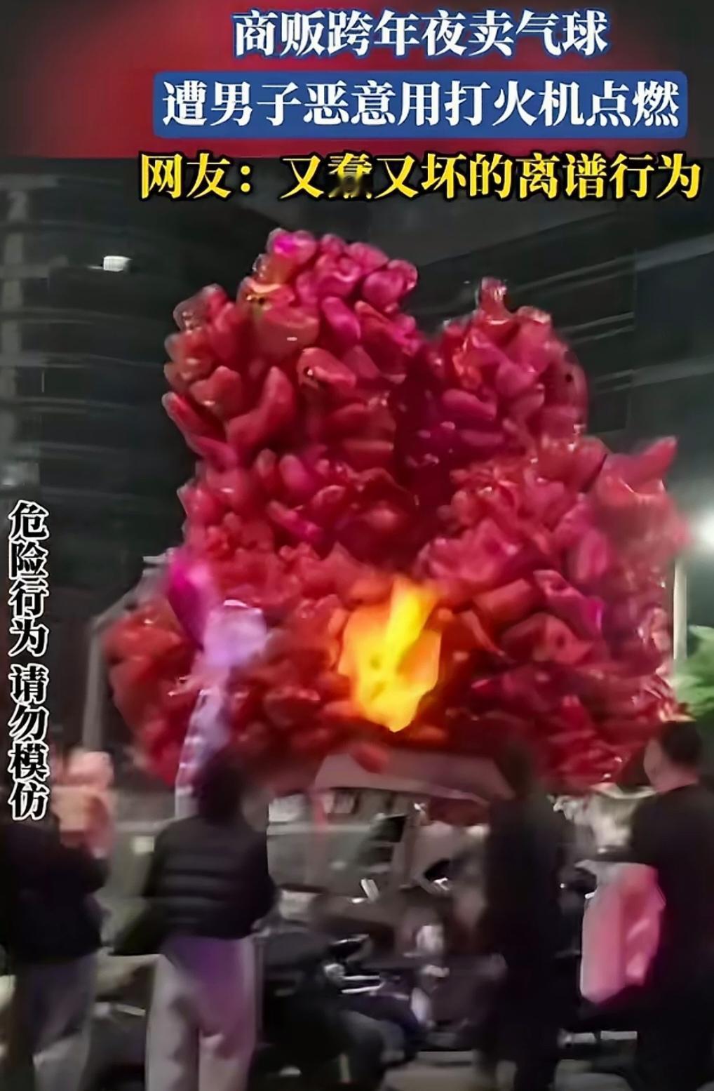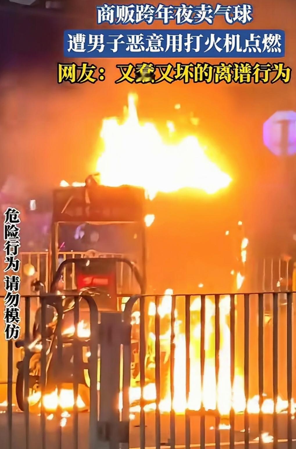 跨年夜深圳一公司员工酒后惹事,恶作剧用打火机点燃商贩代售的氢气球。一大球气球瞬间爆燃,波及近前一三轮车。 男子被拘留在拘留所跨年,此举应该不止仅仅拘留吧!据说男子公司在附近,公司先行赔付小贩。至于后续等警方消息吧!