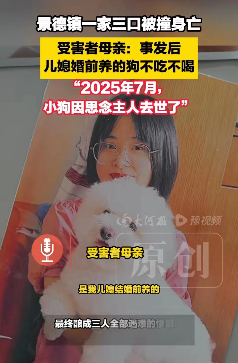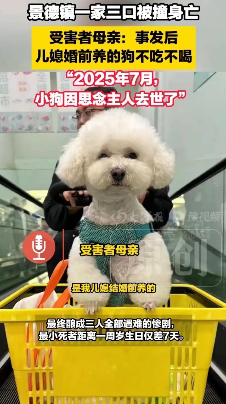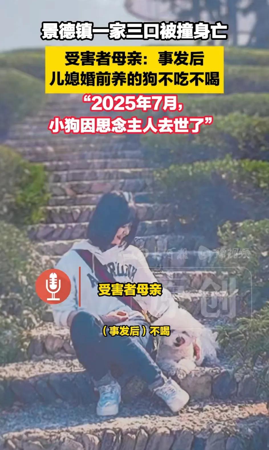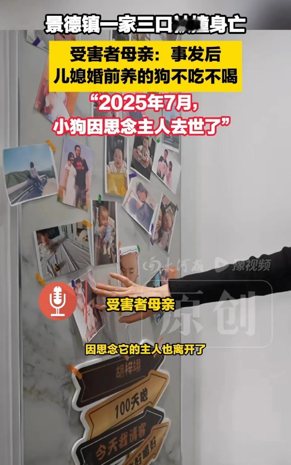 景德镇一家三口被撞身亡。受害者母亲说,事发后儿媳妇养的小狗,不吃不喝,2025年7月,小狗因为思念主人去世。受害者母亲叫人制作了自己的孙子从一岁到十八岁的全家福合影。拿着孩子的未来相册,就算是圆心中的一个梦。