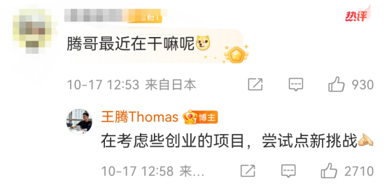 去年10月,王腾在社交平台回复网友提问时曾透露,自己正在“考虑些创业的项目,尝试点新挑战”。这一回应虽然没有明确说明方向,但已间接否认了加入其他公司的可能。当时还有不少人推测,他可能会继续从事数码领域相关工作。