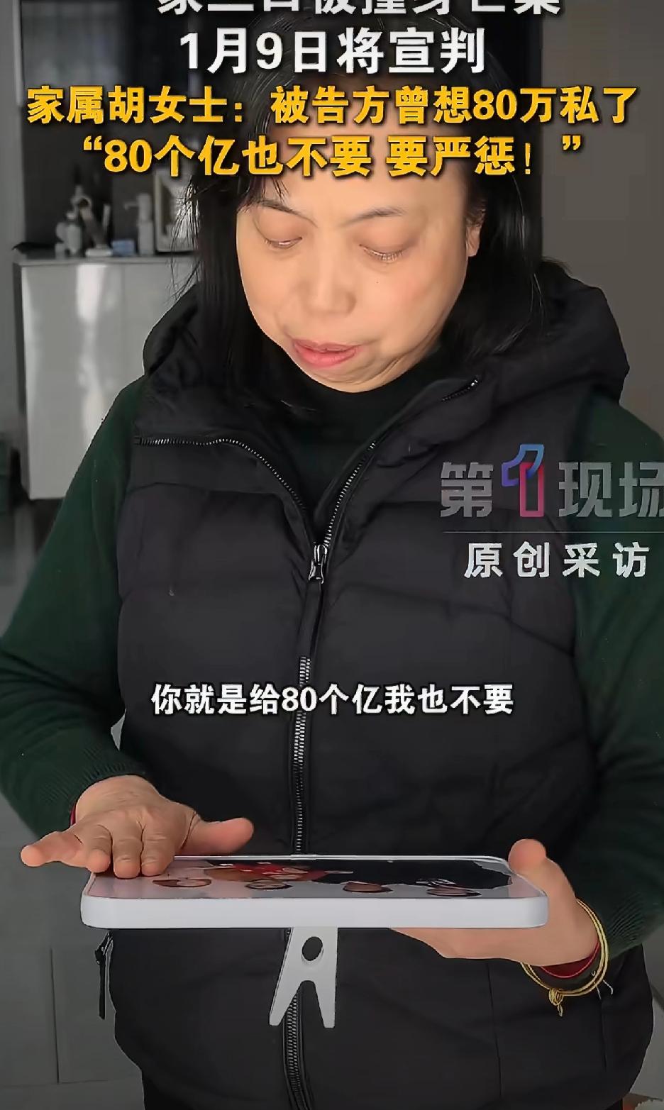 冲这个态度,必须死刑,否则如何告慰死者在天之灵。 1月9日,“景德镇一家三口被撞身亡案”终于要迎来终局,廖某仅仅因为和女友争吵就飙车泄愤,最终导致一家三口身亡,其中更是有未满周岁的婴儿。 除了事件本身的恶劣影响外,肇事者嚣张冷漠的态度才是最让人气愤的,有警方的执法记录仪显示廖某撞人后未施救,而且下车抽烟、玩手机联络朋友,并反复询问其女友在哪。肇事者父亲更是称事故是“天灾”,威胁受害者家属“追责是人祸,让你们死干净”。 肇事者一家的所作所为,简直是令人心寒,人性何在!要知道胡女士夫妇(逝者父母)失去了独子、儿媳及唯一孙子,已经患重度抑郁症及创伤后应激障碍,每日仅睡1-2小时,需药物维持。 儿媳的爷爷则因悲痛过度于2025年3月离世,家属至今向80多岁奶奶隐瞒实情。 据家属称宠物狗“奶油”因思念主人绝食而亡,与肇事者事后冷漠形成尖锐对比。 肇事方想赔偿80万了事,我和受害者家属想法一致,必须严惩,最好是死刑!多少钱都买不回三条鲜活的生命,因为这一撞彻底断绝了受害者一家未来的希望。如果仅仅只是认定为普通的交通肇事罪,我觉得这样对受害者一家太不公平,不能助长这种气焰!
