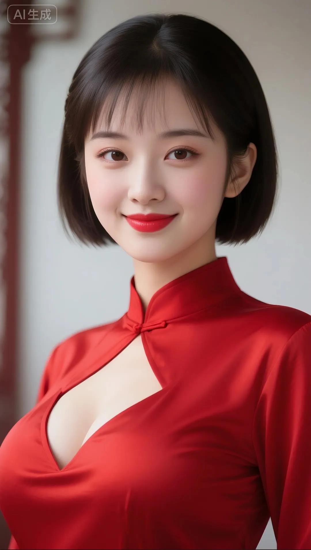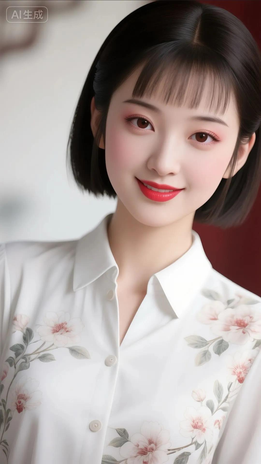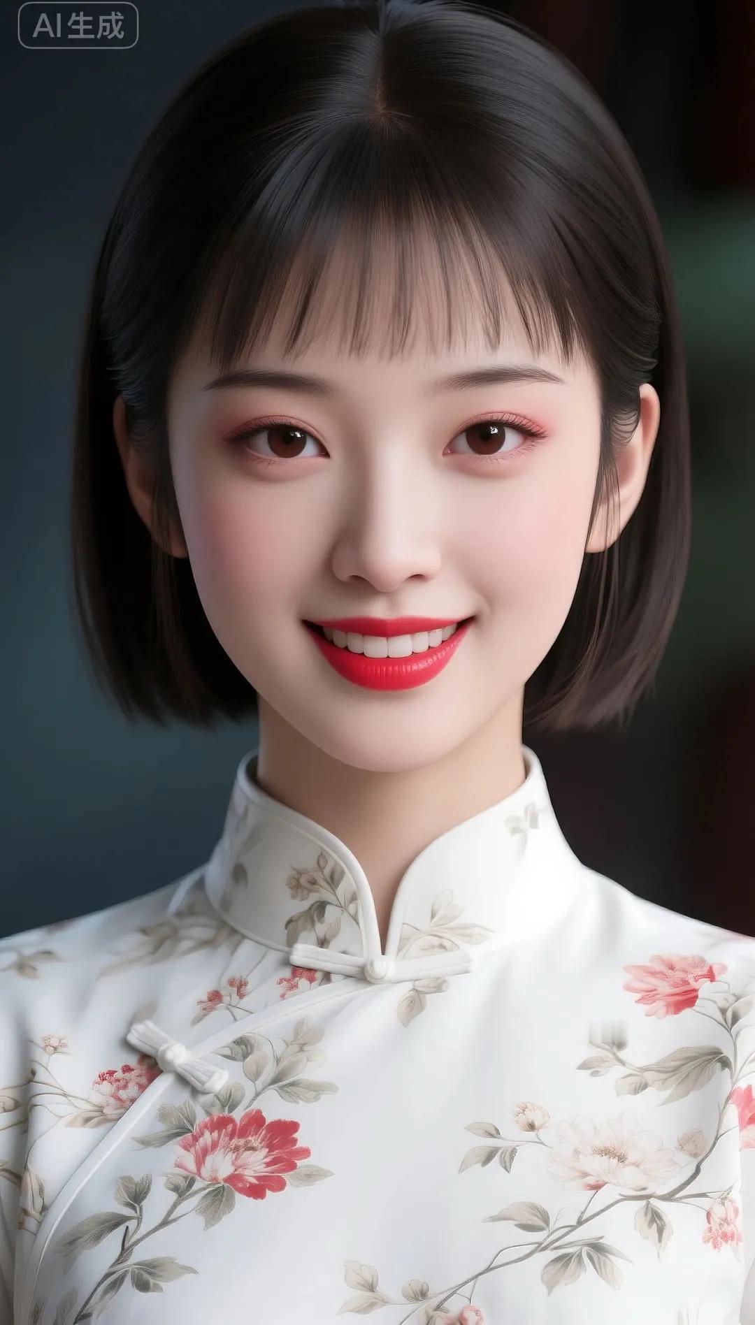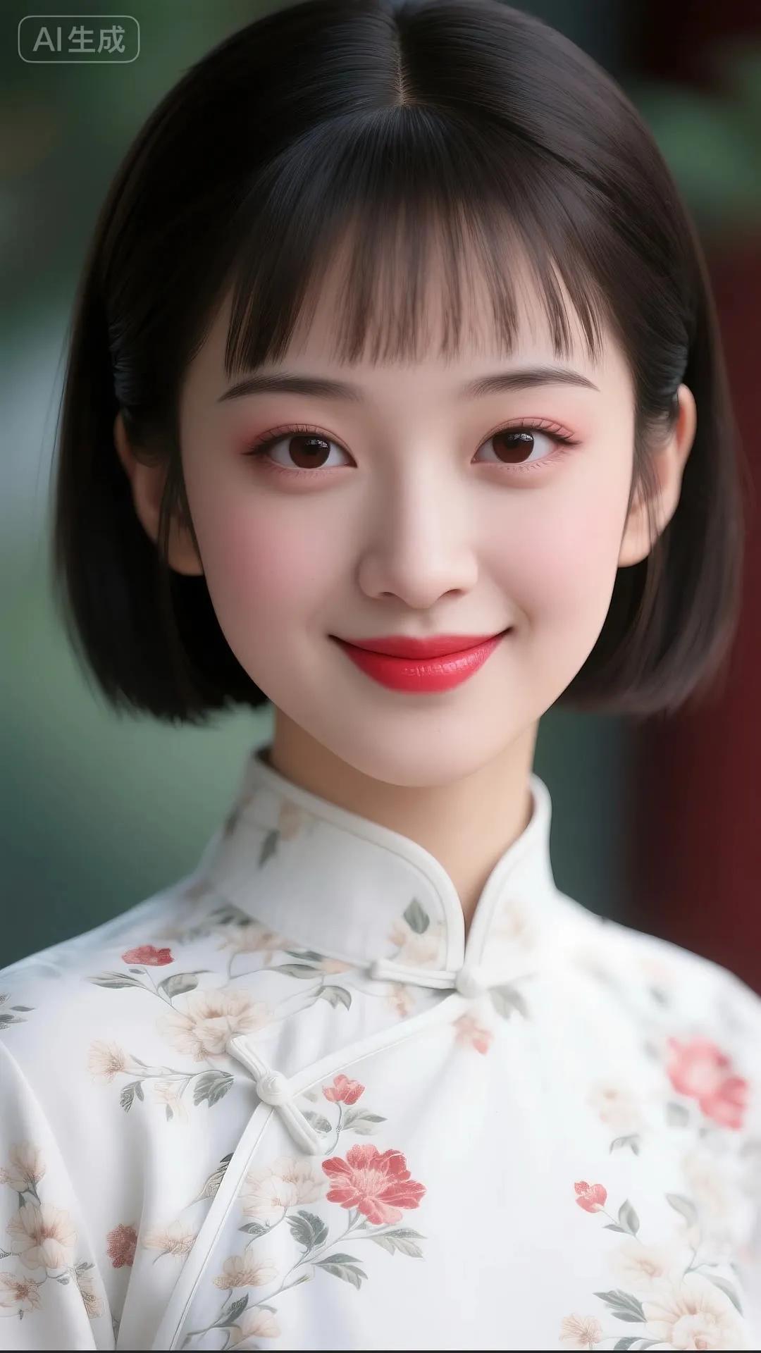 温柔甜美的东方美人,穿着花色旗袍,微笑动人。