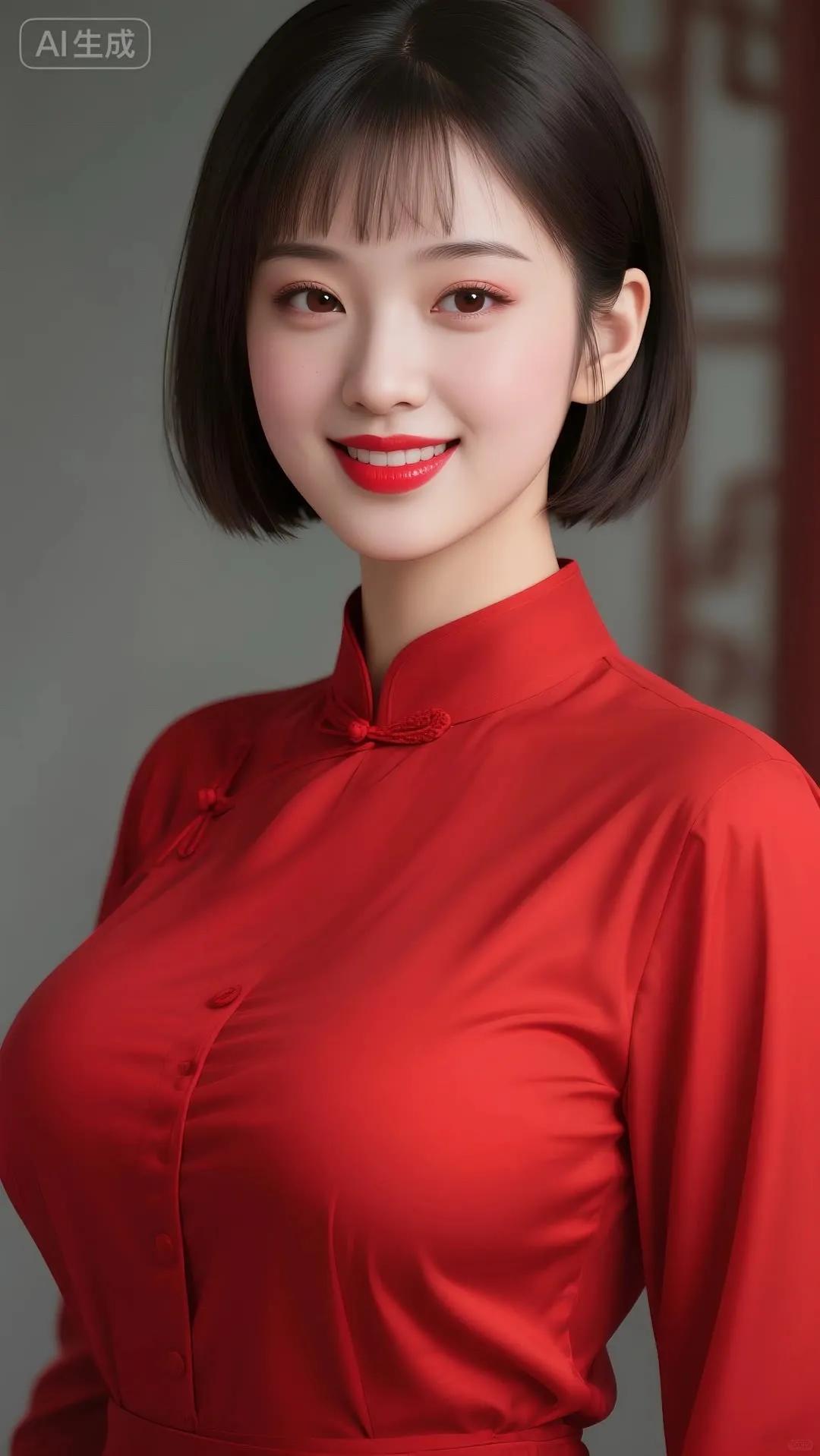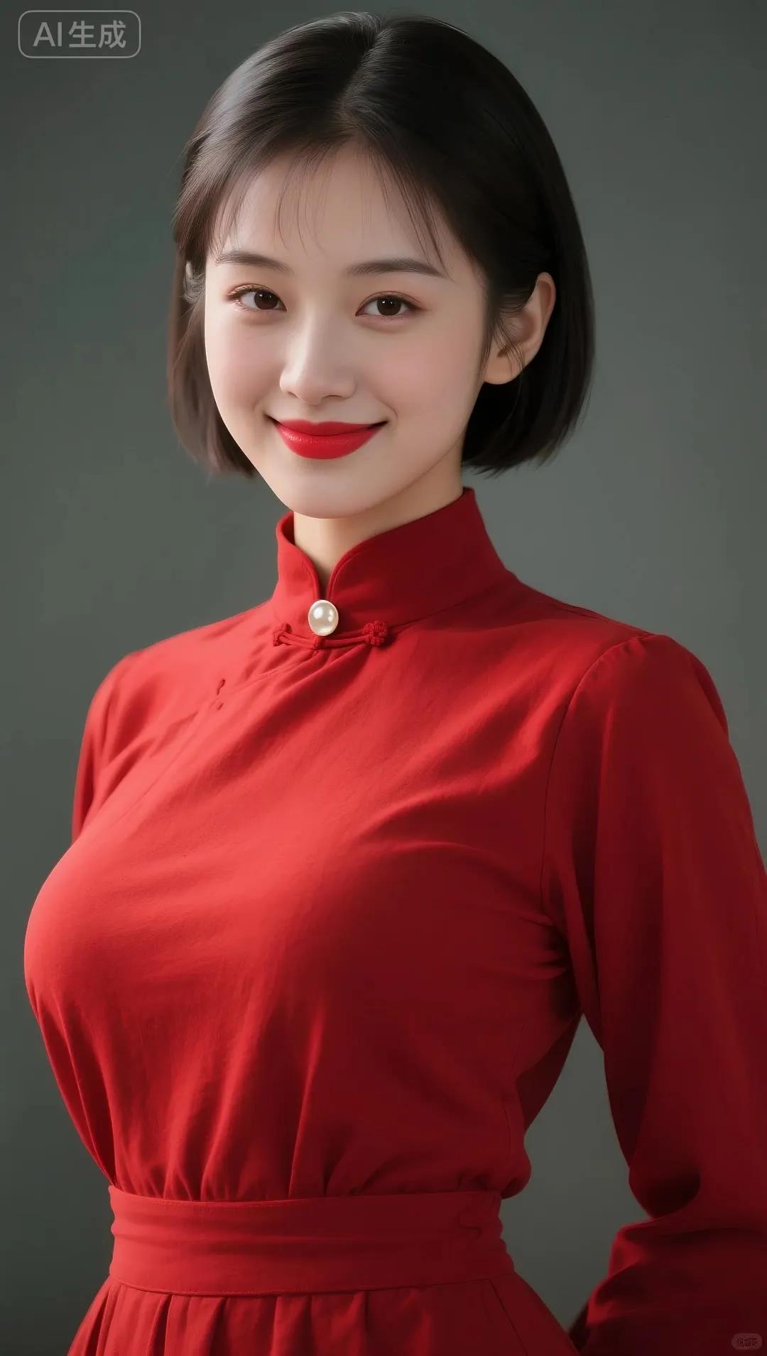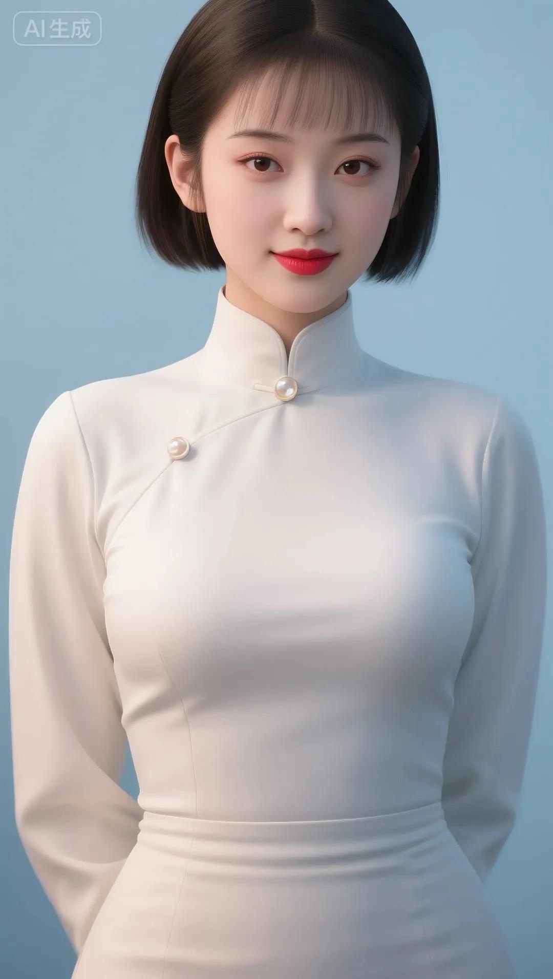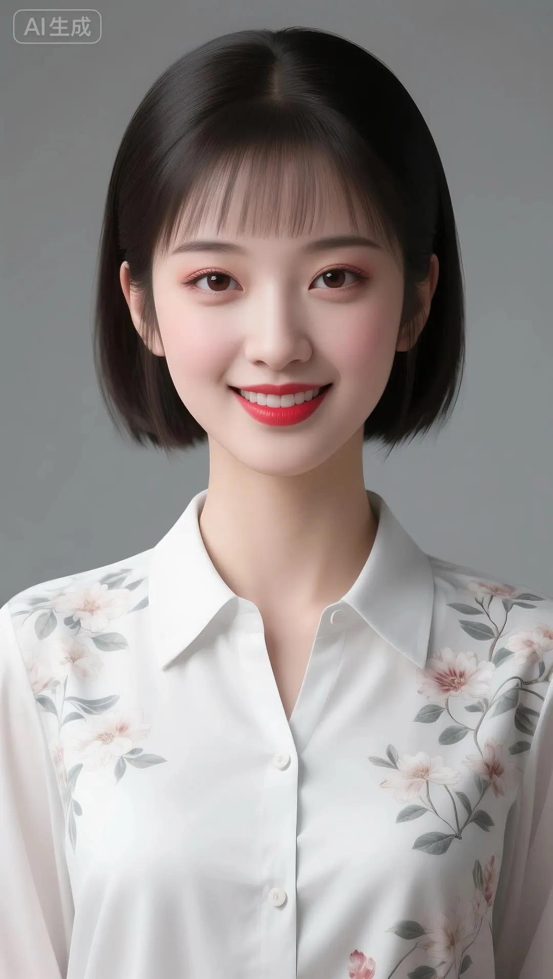 温柔甜美的东方美人,穿着花色旗袍,微笑动人。