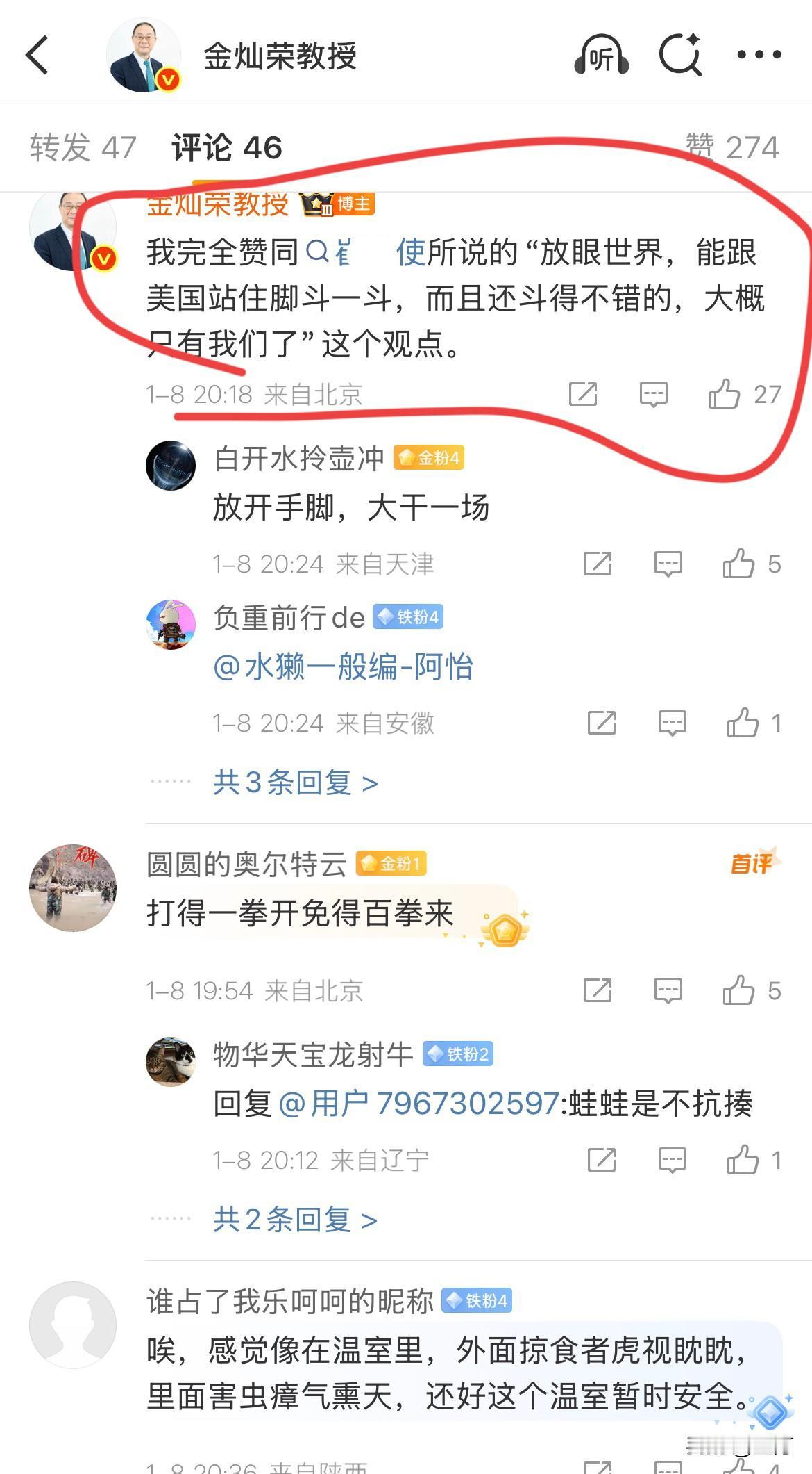 金灿荣:绝对不要低估老头“使坏”的可能性。 今天晚上,金灿荣教授引用了前面大使
