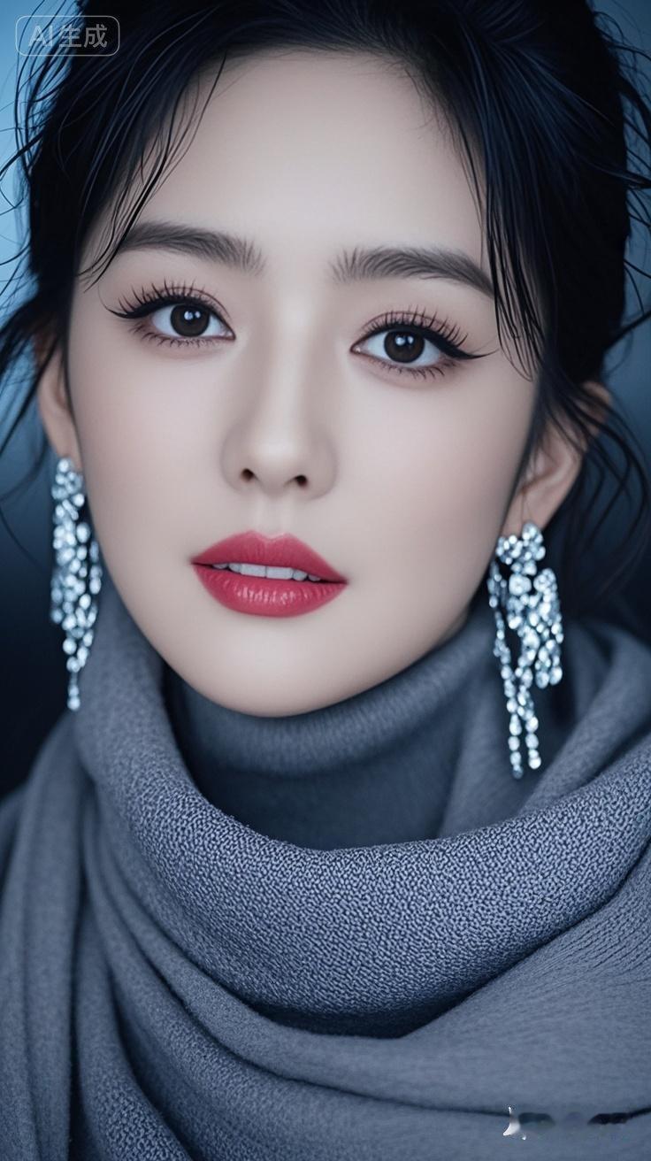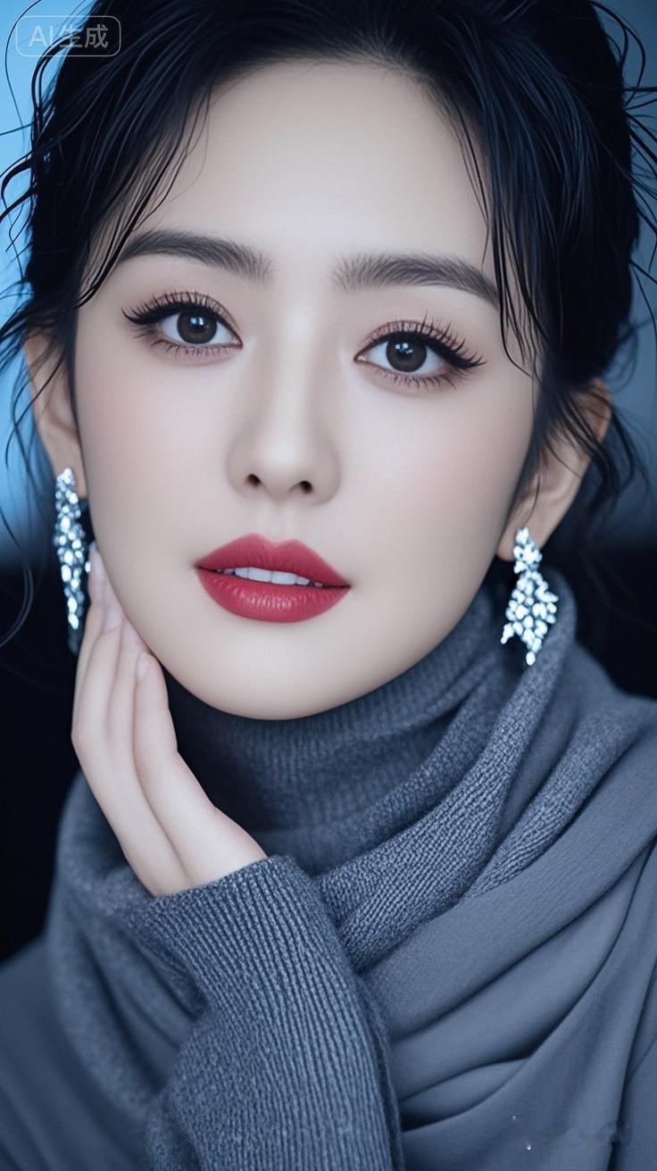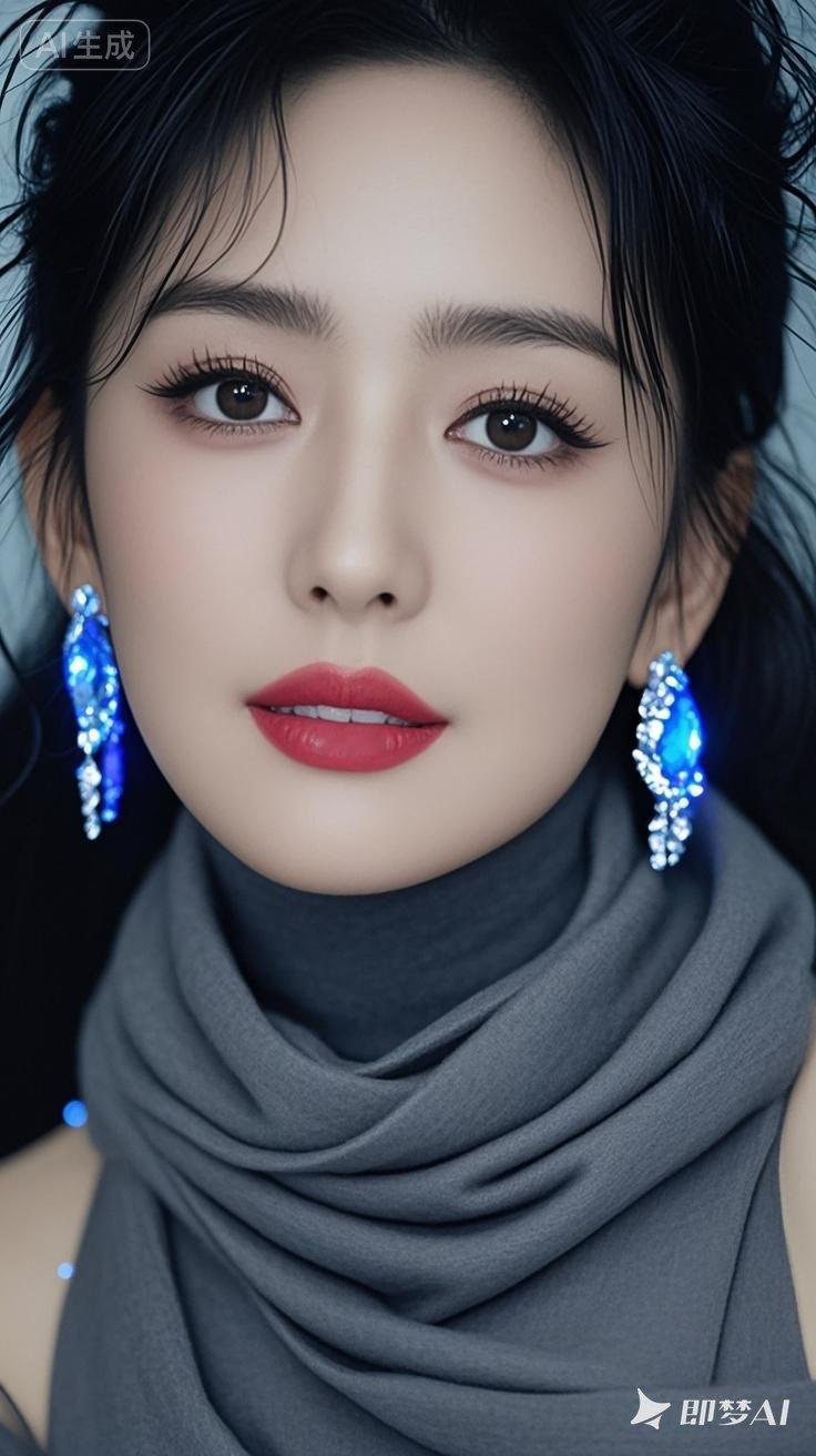 冷艳黑发少女,红唇与银饰的完美碰撞,尽显优雅与神秘。