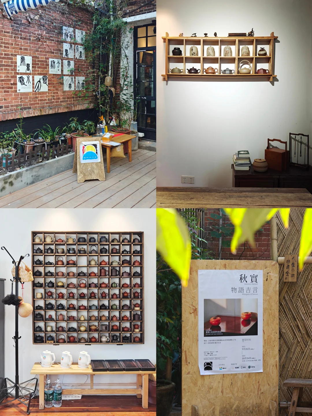 🟠 一楼作为引子,有作品和摆满小柿子的长桌,营造出秋季氛围;二楼是主展区,窗外洒进自然光更显温暖;三楼是茶室,主题茶席需要预约。
