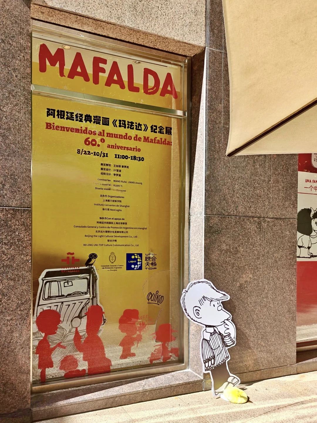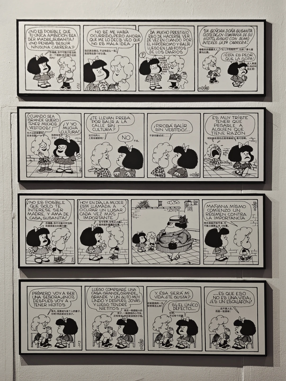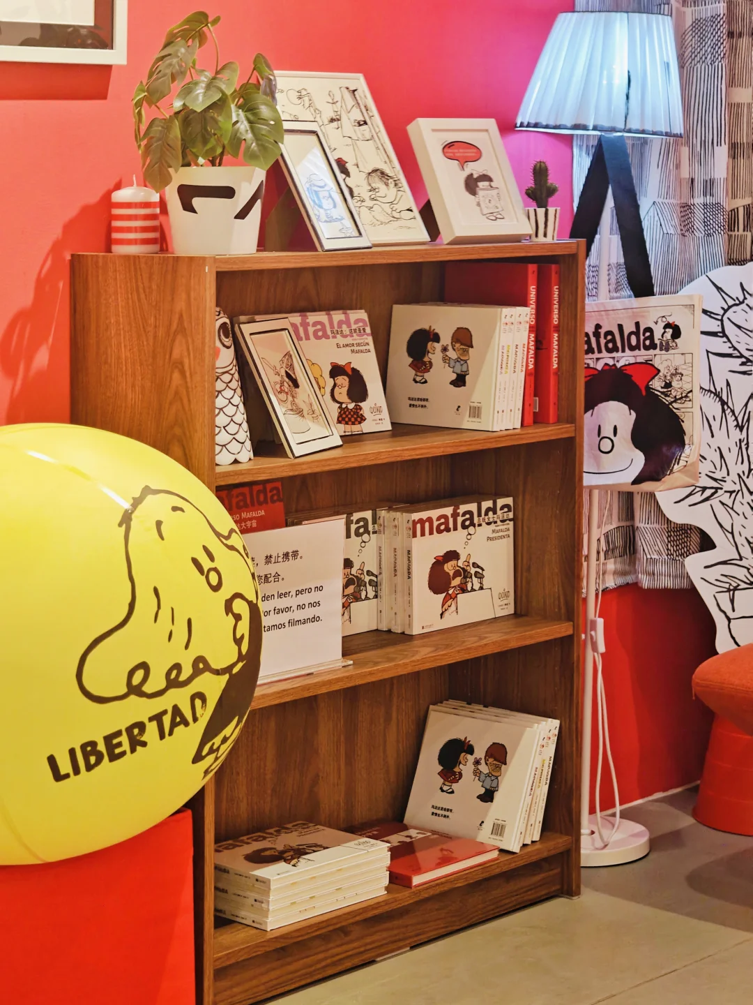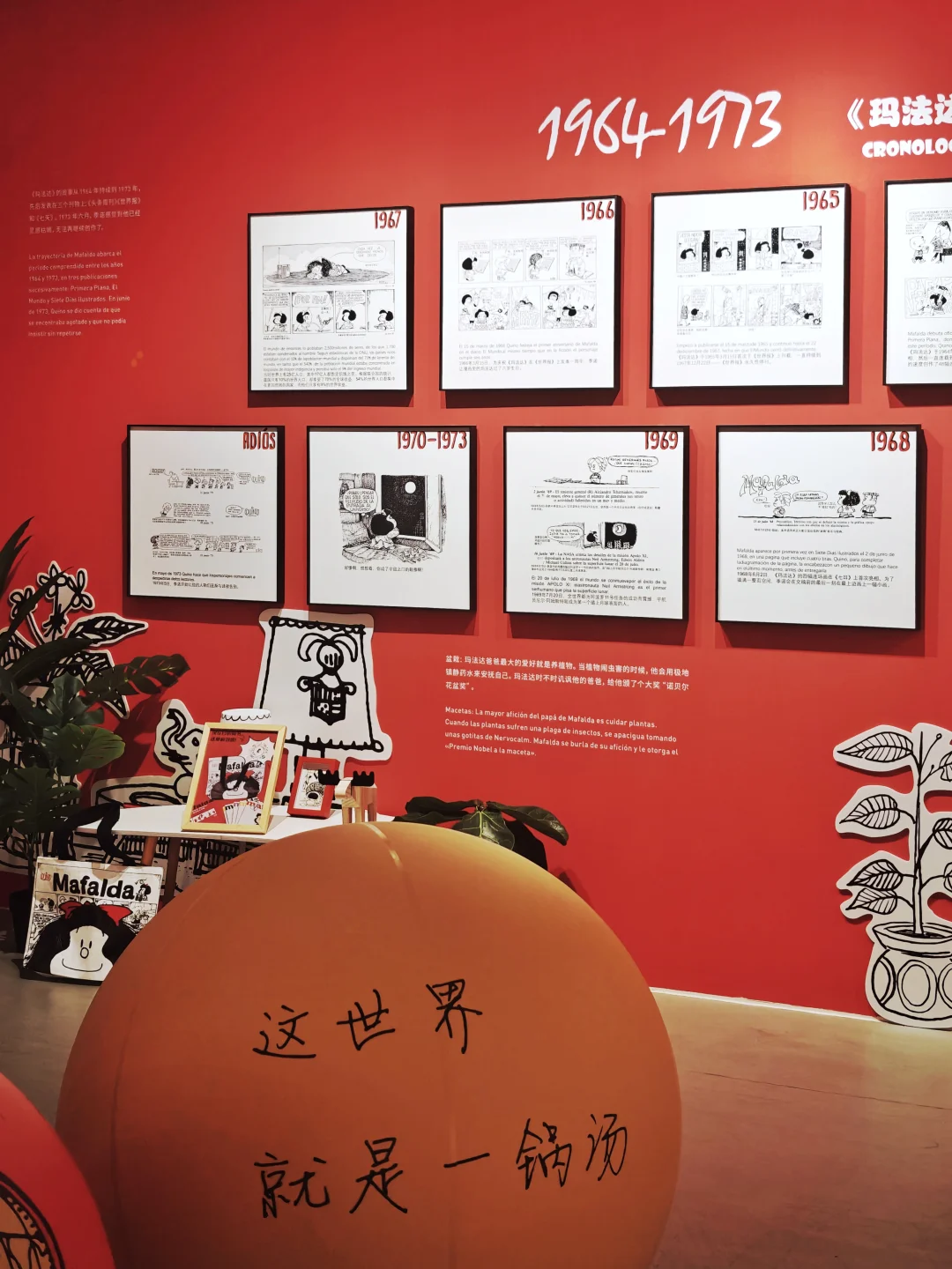 展览不仅展出《玛法达》经典漫画原作,更打造1:1等身角色展板(玛法达及好友苏Susanita、Manolito、Felipe等),复刻她的卧室与餐厅场景——仿佛穿越进漫画里的日常,复古又治愈。