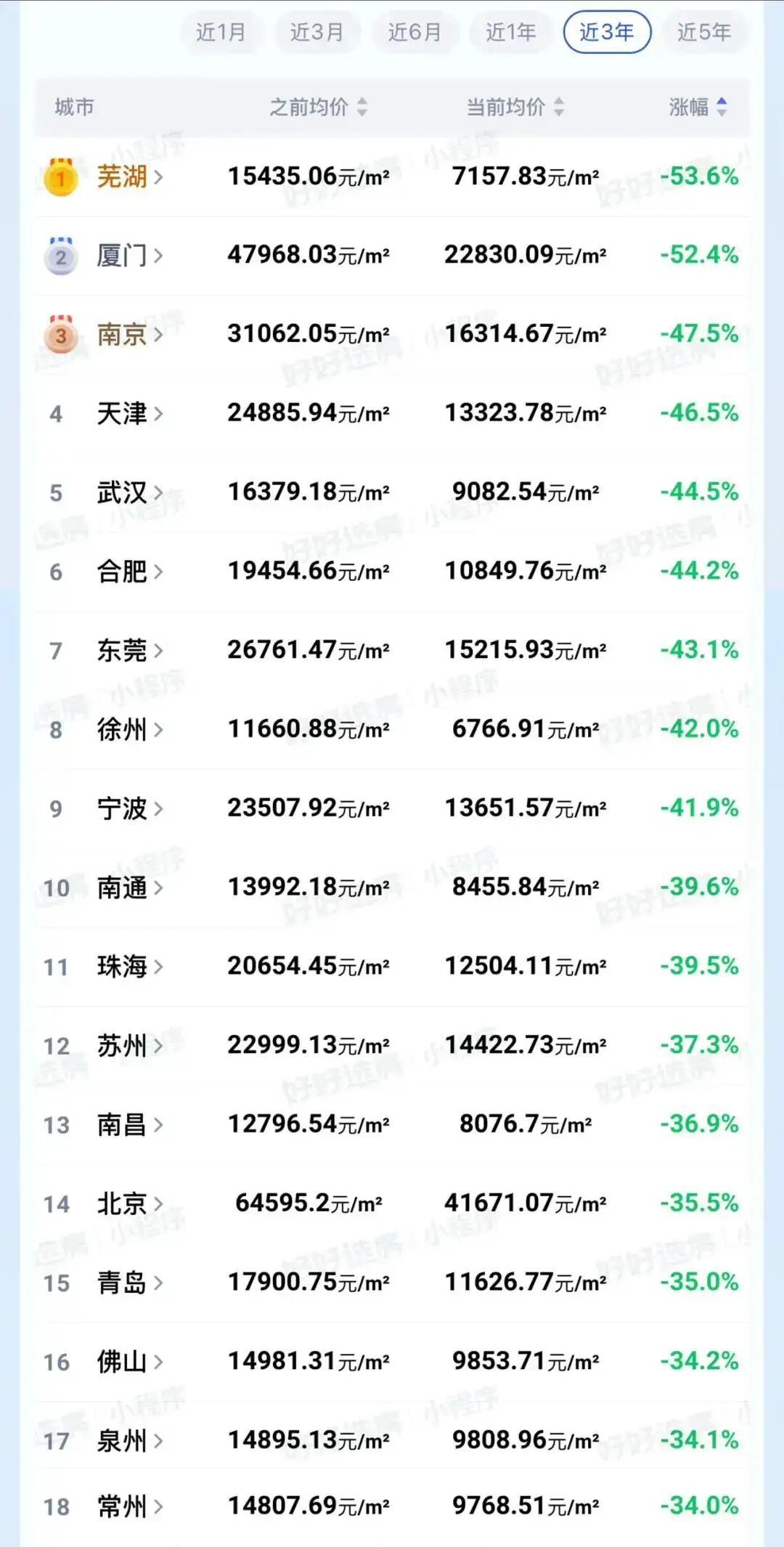 厦门房价三年跌回十年前,福州却只掉了不到一成。 数据摆在那儿:厦门二手最高回撤超两成,福州稳稳控制在10%以内。 岛内房东现在挂牌半年没人看,岛外新盘直接贴着地价卖。 福州那边倒是淡定,地铁一通,外围刚需就出来接盘,库存慢慢消化。 有人说厦门投资客太多,一限就垮;福州自住为主,抗跌也抗涨。 我看关键还是供需:厦门地少人多预期高,一掉就恐慌;福州供应足,政策又肯给补贴,自然稳得多。 房子终归要回归住的本质。 炒上去的,终究得还回来。