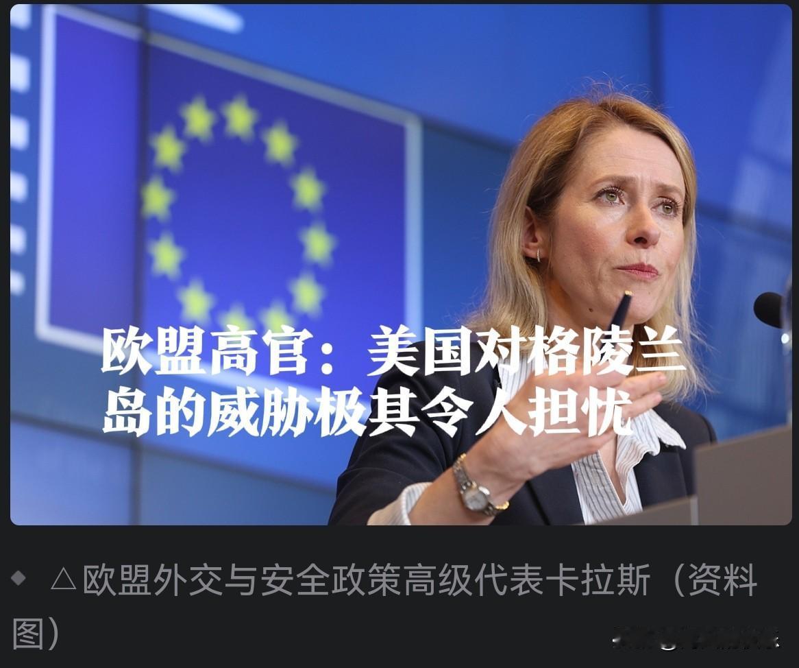 欧盟高官:美国对格陵兰岛的威胁极其令人担忧 据外媒报道当地时间8日,欧盟