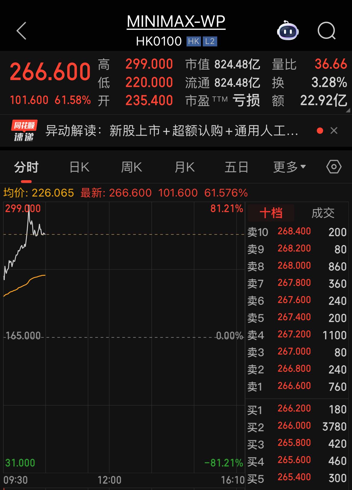 南北大模型领军企业接连登陆港股! 1月9日,上海大模型企业MiniMax正式上市,盘中一度大涨超80%,同时带动昨日在港上市的北京智谱华章股价急升,盘中亦一度涨超25%。 MiniMax与智谱分别立足上海与北京,均为国内大模型领域的代表性企业,此次南北呼应、接连上市,展现出该赛道强劲的发展势头与资本热度。
