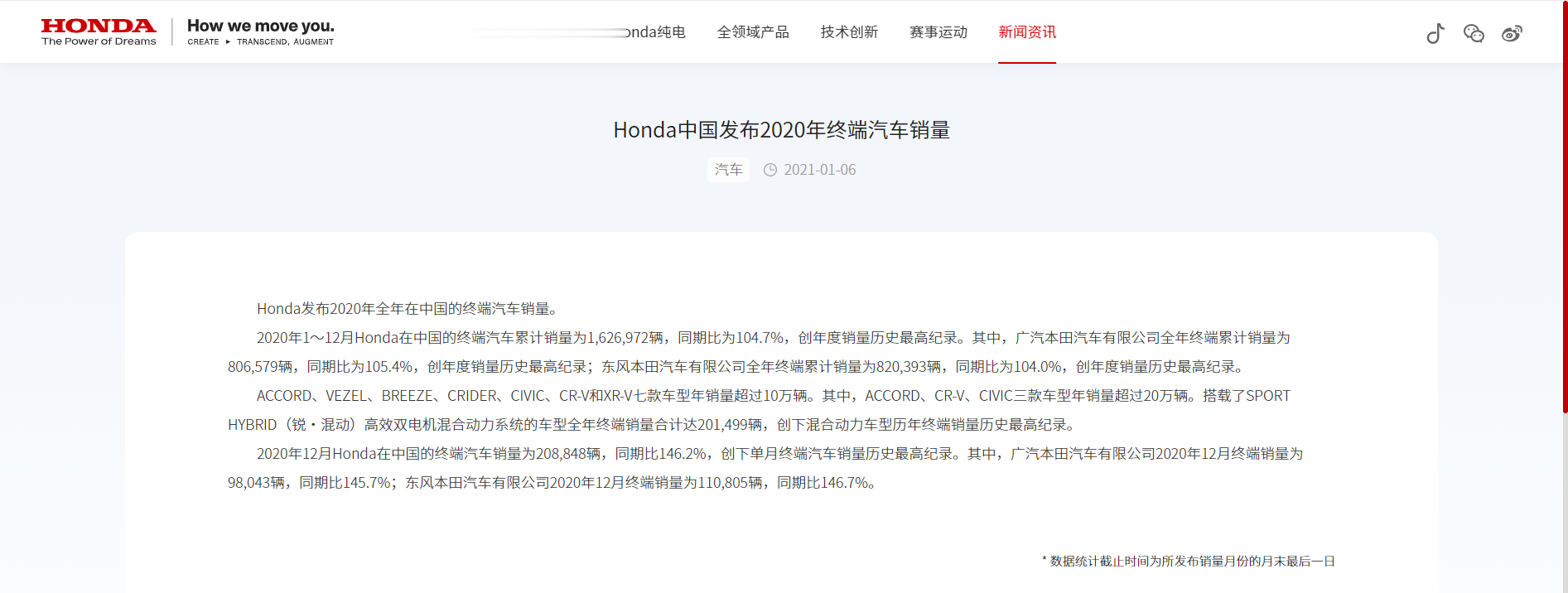 1月9日,本田中国发布2025年全年终端汽车销量数据。2025年全年本田在中国的终端汽车累计销量为645345辆,上年同期为852269辆,同比下降24.28%。2025年12月本田在中国的终端汽车销量为66765辆,上年同期为111870辆,同比下降40.32%。