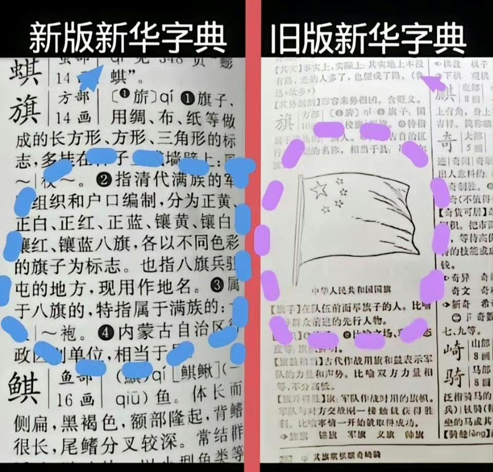 原来这都是要“鸠占鹊巢”。 (图一)某学者的著作,秦始皇,是说蒙古话的女真人,看这题目都起的这么割裂。 (图二)学生字典里,解释“旗”字非要解释八旗,夹带私货也太明显了吧。 (图三,图四)以前年画过年娃娃也被人带沟里二十多年,还是如今的汉服娃娃更大气、漂亮。