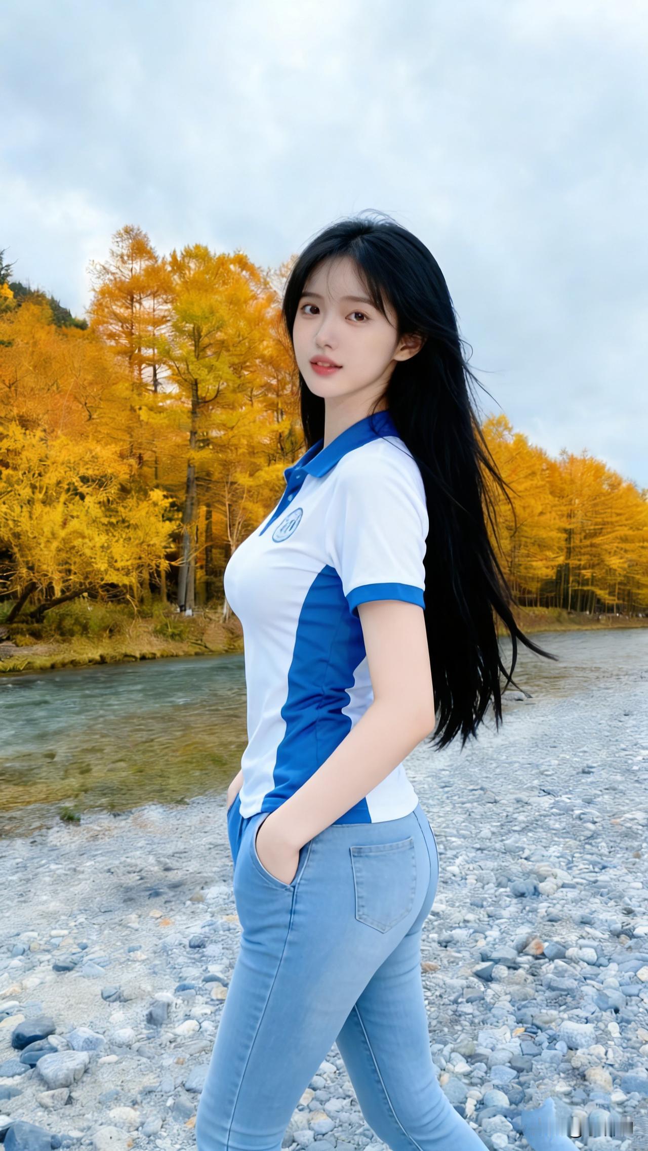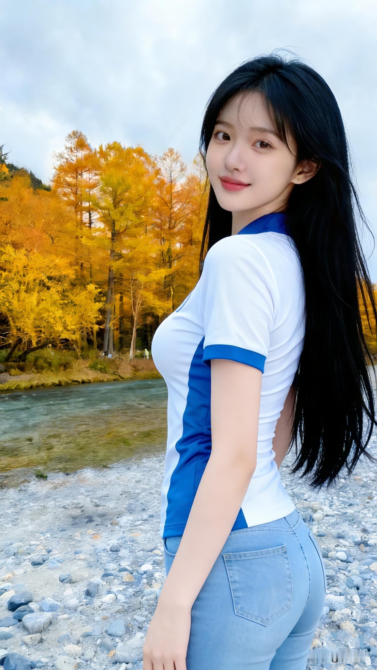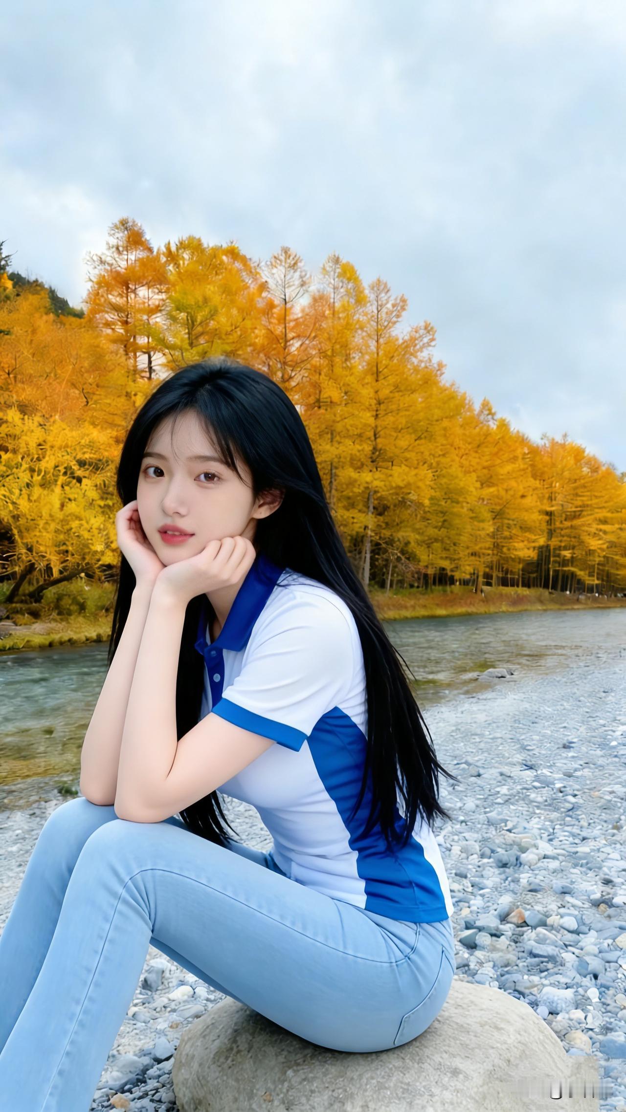 都市丽人蹲拍,时尚穿搭与自然风景的完美融合。
