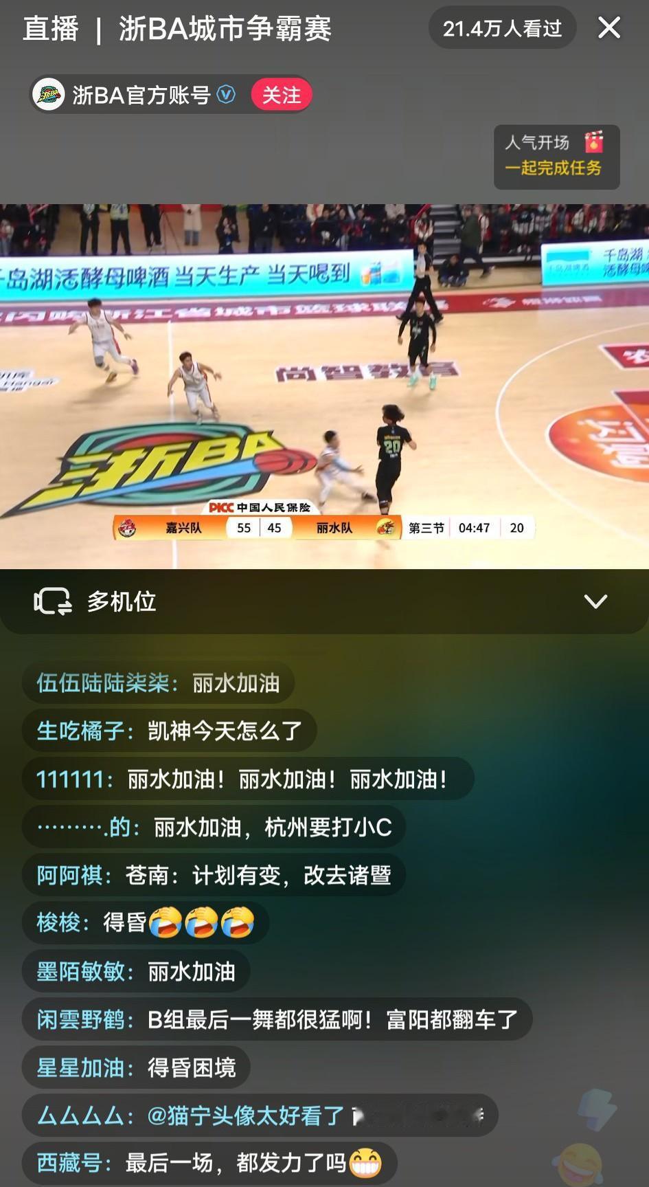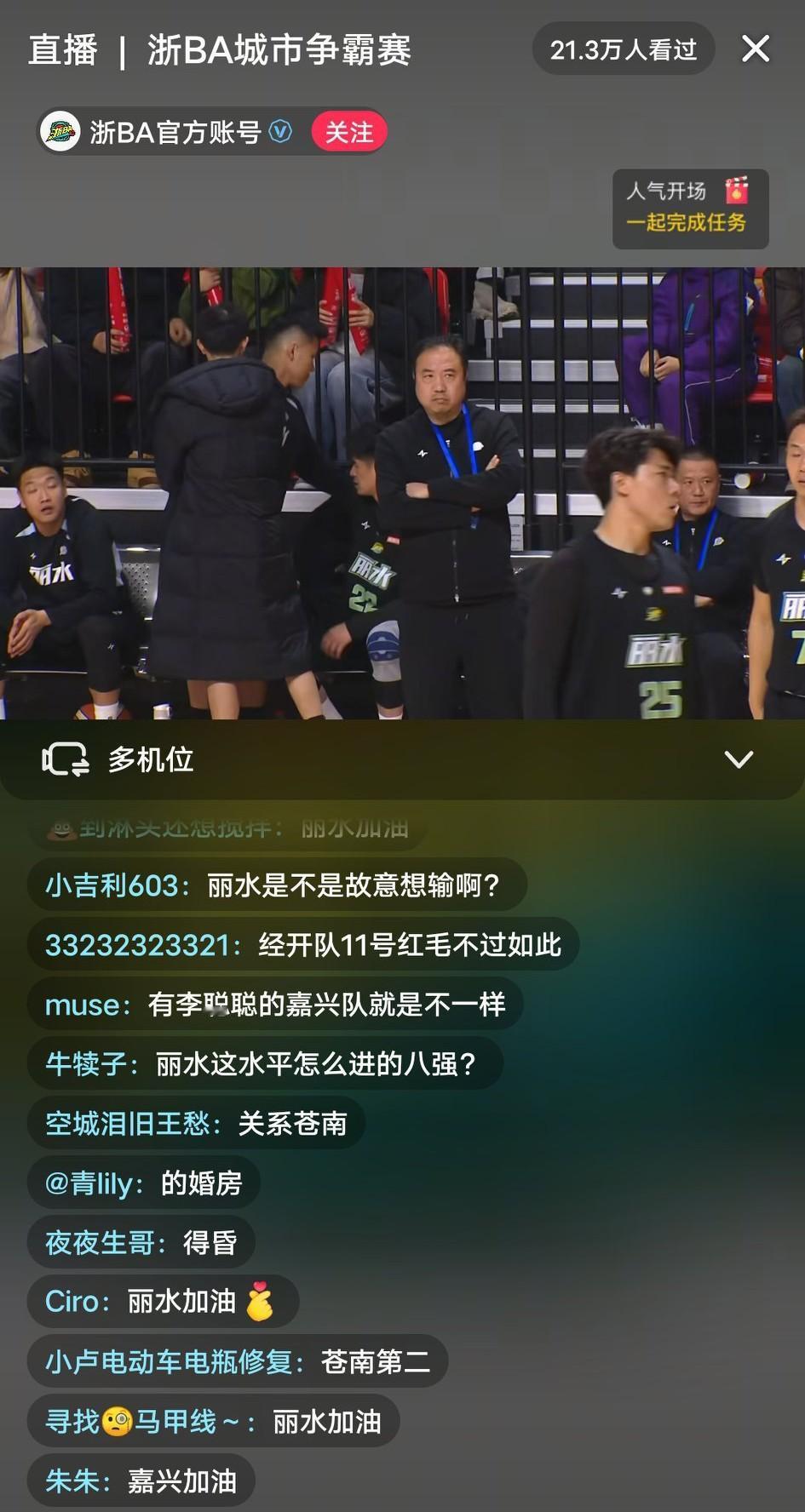 丽水45:55嘉兴,面对场上比分落后的局面,丽水队主教练在场下也是一筹莫展,想到淘汰赛首轮有可能碰上A组的杭州,确实也非常能理解丽水队主教练此时此刻焦急的心情。 第三节中段给嘉兴队打出一波小高潮,特别是嘉兴队黄一凡那个从后场一条龙杀到篮下,投篮命中还造成了加罚,这个球实际上是很涨嘉兴队的士气的。而反观丽水队,就靠一个倪豪凯,他一旦被防住或者手感不佳,那丽水队就非常难打了。 就今天的丽水队的表现,淘汰赛上无论是碰杭州还是诸暨,都是很难全身而退的! 球迷朋友们,你们说呢?