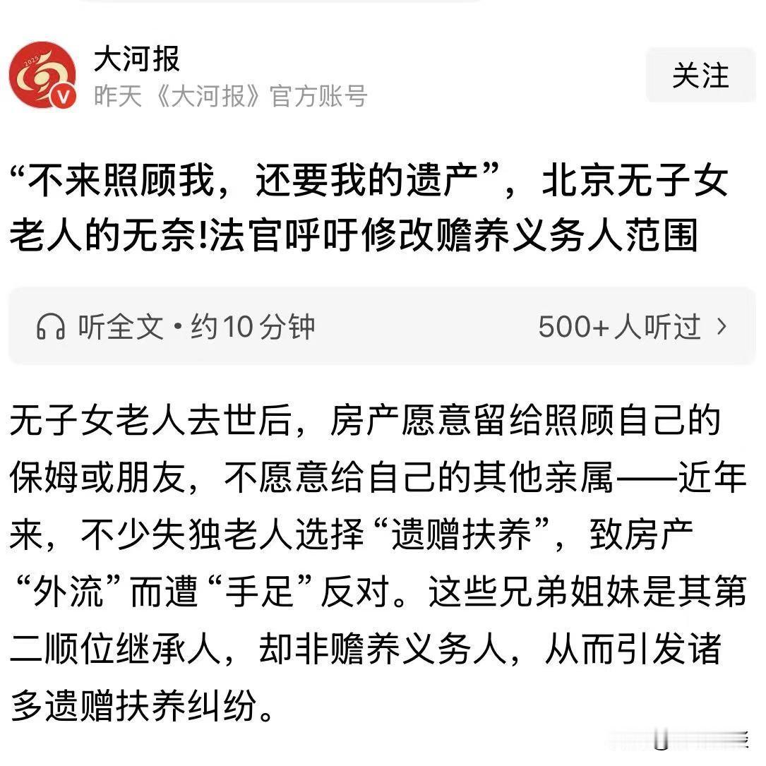 北京,女子患有精神疾病,父亲离世前,委托保姆照顾她,后来保姆还把女子带回老家,一照顾就是20多年,没想到,女子的外甥却突然要求做他的监护人,女子:我是有精神疾病,但是我能有清楚的自主意识,20年前求你们照顾我,你们都不管,如今想起来我了,我不需要!后来女子离世,把自己的房产遗赠给保姆的孙子,女子姐姐们得知后突然现身,质疑遗嘱效力,法院最后这样判了! 王女士患有精神疾病,日子一直过得挺难,没有孩子,也没结过婚。 身边的亲人不算少,亲姐姐就有好几个,可如今真到了需要人搭把手的时候,大家一个个都往后缩。 各种各样的理由推诿,生怕王女士这颗烫手山芋砸到自己手里。 父亲那会还在世,王女士一直跟父亲一起生活,家里还有个保姆。 可老父亲明知自己身体一天不如一天,最放心不下的就是这个有精神疾病的女儿。 思来想去,父亲找到了家里的保姆李慧,拉着她的手,几乎是哀求着托付: 我走了以后,我这闺女想拜托你了,她那些姐姐靠不住,希望你能留下来照顾她。 李慧是个实在人,看着老人眼里的恳切,又瞧着王女士可怜的样子,心一软就应下了。 没过多久,老人就撒手人寰了,果不其然,老人走后,王女士的几个姐姐彻底没了踪影,别说照顾了,连个电话都没有。 李慧为了长久打算,也为了方便照顾王女士,一咬牙,带着行李和王女士回到了自己的老家。 这一照顾,就是二十多年。 二十多年里,李慧把王女士当成了自家亲人。 天冷了添衣,天热了解暑,王女士病情有波动的时候,她整夜不合眼守着。 王女士心情好的时候,李慧陪着她唠嗑、逛集市。 李慧每年还都带着王女士回北京检查身体,复查病情,照顾的特别仔细。 老家的街坊邻居都知道,王阿姨带着个北京来的妹妹,俩人不是亲姐妹,却比亲姐妹还亲。 王女士虽然有精神疾病,但脑子清楚的时候占大多数,谁对她好,谁对她虚情假意,她心里跟明镜似的。 她常拉着李慧的手说,这辈子遇见你,是我的福气。 可谁也没想到,平静的日子会突然被打破。 王女士的外甥突然跑到法院,申请要做王女士的监护人。 王女士得知此事,当时就气笑了,外甥的算盘珠子都崩到她脸上了。 这肯定是冲着自己的财产来的,不然怎么会突然要求做她的监护人。 二十年前,父亲离世时,自己最需要家人的时候,她们一个个躲得比谁都快。 后来王女士告诉他们,别想了,我是有精神疾病,但是我没糊涂,我目前生活能自理,不需要监护人。 而且,我想让谁照顾我,我有选择权,谁也别想打我的注意。 王女士早就知道谁是真心实意,谁是虚情假意,所以她老早就在北京一老年服务中心写了一份遗嘱。 表示自己离世后,将自己和保姆李慧一起合买的房子,属于自己的那一份份额,留给李慧单位孙子。 后来王女士去世后,房子按遗嘱要求,将房产分给了李慧的孙子。 王女士的后事也都是李慧一家人忙前忙后操办的。 可谁能想到,王女士走后,遗产的事传到她那几个销声匿迹二十多年的姐姐耳里z 他们突然就冒了出来,张嘴就要分遗产,说王女士有精神疾病,立的遗嘱不算数。 要求按照法定继承,来继承王女士的遗产。 后来这事闹到了法院,几个姐姐在法庭上哭得一把鼻涕一把泪。 都说自己和王女士是血浓于水的亲姐妹,说王女士糊涂,被李慧给骗了。 可法院讲究的是证据,不是眼泪。 法官核查发现,王女士的遗嘱经公证处公证,立遗嘱当日有专业精神科医生出具鉴定报告。 明确其意识清晰、具备完全民事行为能力,遗嘱系其真实意愿。 随后法官走访两地邻居,众人皆证实二十余年里一直是李慧照料王女士,其姐姐们从未露面,更未尽照料之责。 《民法典》第1130条:同一顺序继承人继承遗产的份额,一般应当均等。 对生活有特殊困难又缺乏劳动能力的继承人,分配遗产时,应当予以照顾。 对被继承人尽了主要扶养义务或者与被继承人共同生活的继承人,分配遗产时,可以多分。 有扶养能力和有扶养条件的继承人,不尽扶养义务的,分配遗产时,应当不分或者少分。 继承人协商同意的,也可以不均等。 王女士遗嘱经公证且有精神科鉴定,属真实有效遗赠。 其姐姐们有扶养能力却20余年未尽扶养义务,符合应当不分或少分情形。 最后,法院判决,王女士所立遗嘱合法有效,涉案房产由李慧的孙子所有。 判决书下来后,李慧红了眼眶,她不是为了得到房子而高兴。 而是觉得,这二十多年的付出,总算有了一个公道的说法。 不得不说,这世上的亲情,从来都不是靠血缘绑出来的。 那些在你落难时转身就走的人,没资格在你身后指手画脚。 而那些用真心暖了你半生的人,值得一份最踏实的回报。 对此,你怎么看这件事呢? @静心法谈 学法辨是非,慬法不吃亏。