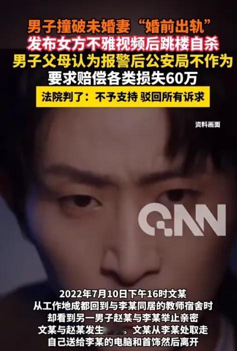 痛心!订婚前夕撞见女友与他人发生关系,男子发不雅视频后跳楼身亡,家属索赔警方60万被驳回 相恋8年,婚纱照拍好了,婚期也定在了2022年9月9日,眼看再过两个月就能和女友李某步入婚姻殿堂,四川南充的文某怎么也想不到,一场精心准备的惊喜,会把自己的人生彻底推向深渊。 文某在成都工作,女友李某是南充的一名老师,两人长期分居两地,只要一有休息时间,文某就会赶往南充,住进两人同居的员工宿舍。2022年7月10日,文某特意没提前打招呼,想给李某一个猝不及防的惊喜,出发前还兴冲冲地打开手机录像功能,准备记录下女友惊喜的表情。 下午4点左右,文某用钥匙打开宿舍门的那一刻,眼前的画面让他瞬间如坠冰窟——李某正和陌生男子赵某一丝不挂地躺在床上发生关系。怒火瞬间冲昏了他的头脑,他冲上去和赵某扭打在一起,可让他心寒的是,本该满心愧疚的李某,态度却异常冷淡,对他的质问爱答不理,这无疑是火上浇油。 冷静下来后,文某拿走了之前送给李某的笔记本电脑和金银首饰,摔门而去。离开宿舍后的文某越想越憋屈,8年的感情和即将到来的婚姻,竟然成了一场笑话,他的情绪彻底失控了。他给李某发去恐吓信息,扬言要把手机里的不雅视频发到网上,让她身败名裂;与此同时,他还给父母和弟弟发了遗言,字里行间都流露着强烈的轻生念头。 李某看到信息后吓得魂飞魄散,立刻报了警;文某的弟弟也哭着拨通了报警电话,哀求民警一定要救救哥哥。接到报警后,警方丝毫不敢怠慢,马上兵分两路展开搜寻:一路去调取文某可能途经路段的监控录像,另一路则开车沿街寻找文某的踪迹。 可让人没想到的是,就在警方紧张搜寻的过程中,当晚7点整,李某的工作群以及多个网络贴吧里,那段不雅视频被公之于众,李某瞬间感觉天都塌了。更让人痛心的消息还在后面,当晚9点多,警方接到群众报警,称有人坠楼,民警火速赶往现场,发现坠楼者正是文某,医护人员赶到后,确认文某已经没有了生命体征。 文某的突然离世,让他的家人陷入了巨大的悲痛之中。在他们看来,警方搜寻效率太低,从报警到文某坠楼间隔了数小时,如果警方能更快锁定文某的位置,及时劝阻,悲剧或许就不会发生。带着这份执念,文某的父母将南充市公安局高坪区分局告上了法庭,要求对方赔偿死亡赔偿金、精神损失费等共计60万元。 但从法律层面来看,家属的诉求根本站不住脚。根据《人民警察法》规定,民警遇到公民人身安全处于危难情形,应当立即救助、及时查处,但这并不等同于“必须成功救下”。本案中,警方接到报警后第一时间调监控、沿街搜寻,已经履行了法定的救助义务,不存在办案不力的情况。 同时,《国家赔偿法》也明确规定,因公民自己的行为致使损害发生的,国家不承担赔偿责任。文某作为完全民事行为能力人,明知跳楼会导致死亡,却依然选择了这种极端方式,死亡结果是其自身行为直接造成的,和警方的搜寻工作没有法律上的因果关系。 值得一提的是,李某在订婚前夕出轨,虽然违背了道德准则,但由于两人没有办理结婚登记,不属于法律意义上的夫妻,所以李某的行为并不违法,只能受到道德谴责。而文某为了报复散布不雅视频的行为,已经涉嫌侵犯他人隐私权和名誉权,属于违法行为,只是因为文某已经身亡,才不再追究其法律责任。 最终,法院驳回了文某家属的全部诉讼请求。这场悲剧让人唏嘘不已,8年的感情最终以这样惨烈的方式收场,实在让人惋惜。 你觉得法院的判决合理吗?如果遭遇情感背叛,你会选择怎样的方式应对?欢迎在评论区留言讨论! 来源:青岛新闻网