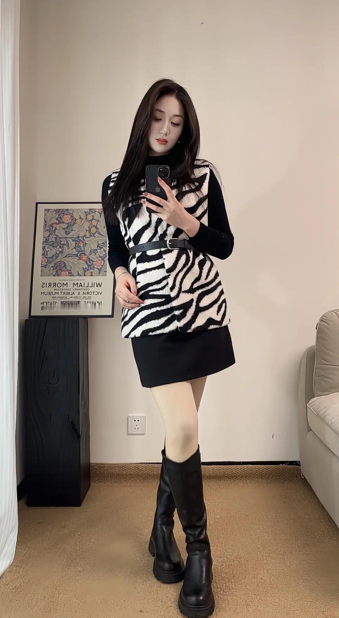 时尚穿搭指南:黑白条纹连衣裙+黑色短靴,简约又帅气!👗👢