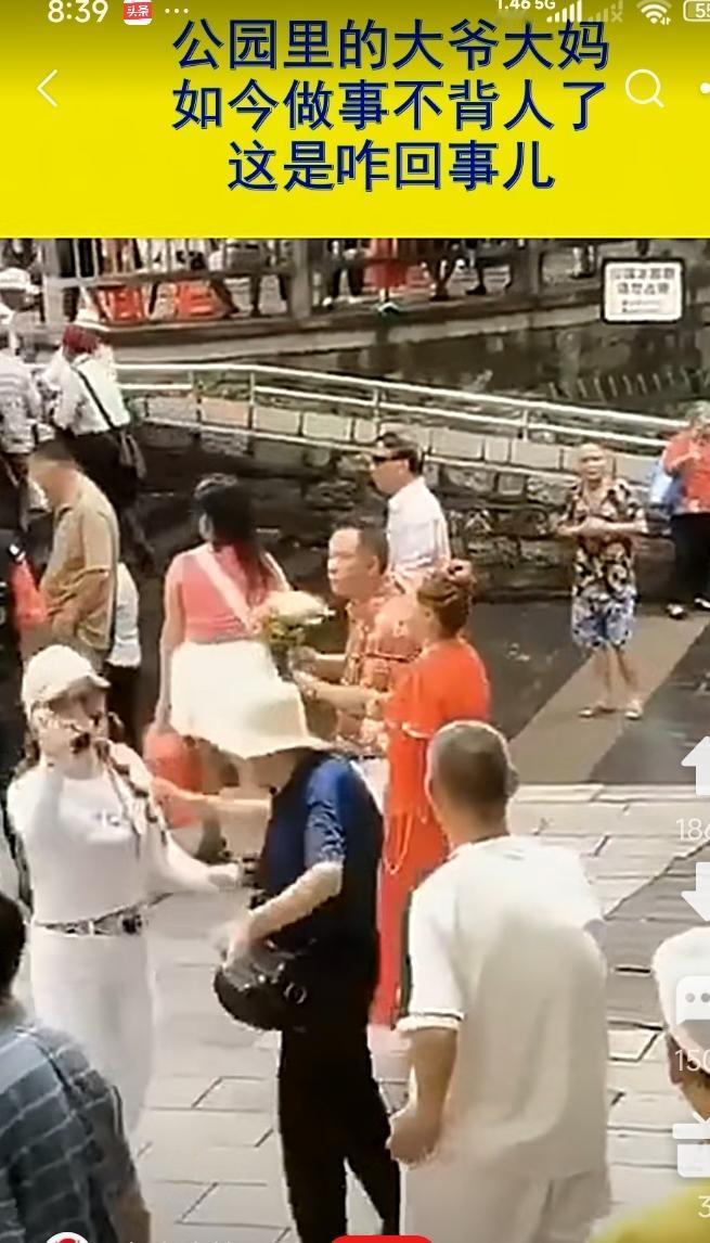 反正都是大爷大妈了,也不遮不掩不躲。 你出钱,我伴舞。 都是有偿服务。 跳得好不好不说,主打一个两厢情愿。 票子一出,交易完毕。 双方立刻开始蓬嚓嚓,蓬嚓嚓跳了起来。 你高兴,我乐意,谁也不亏。