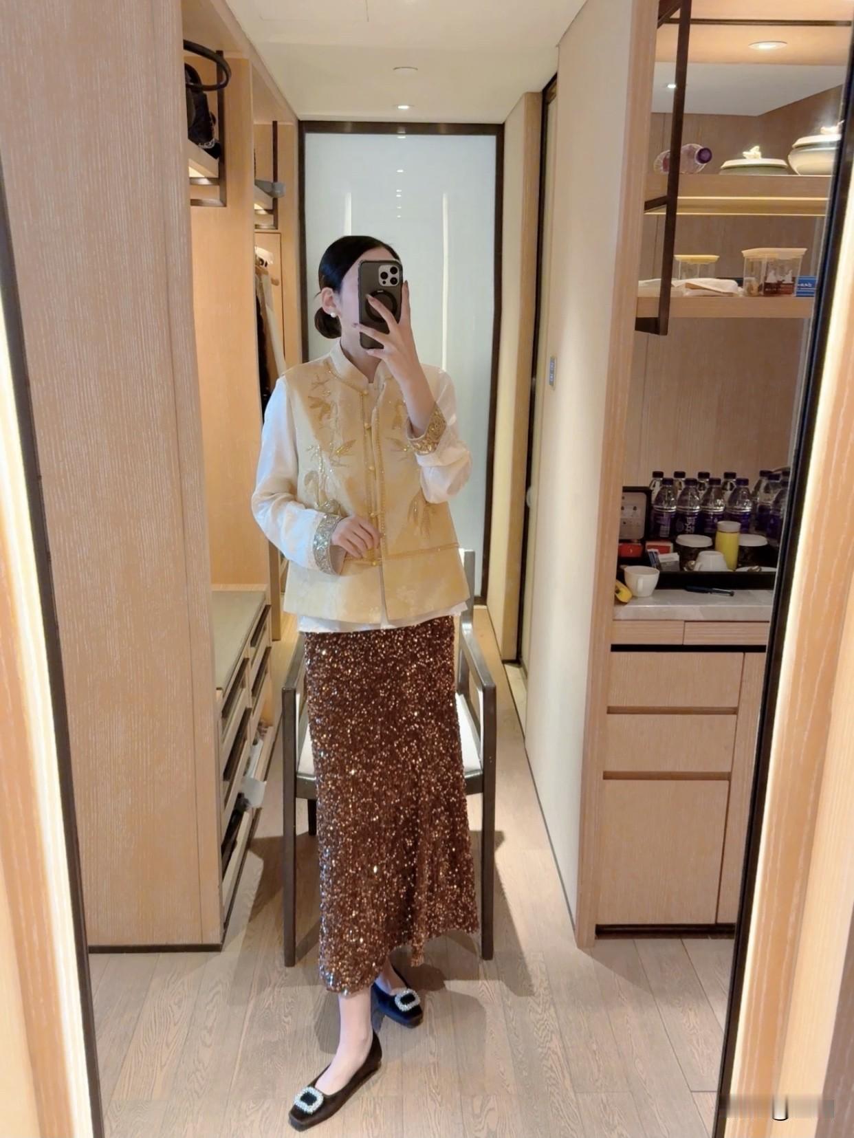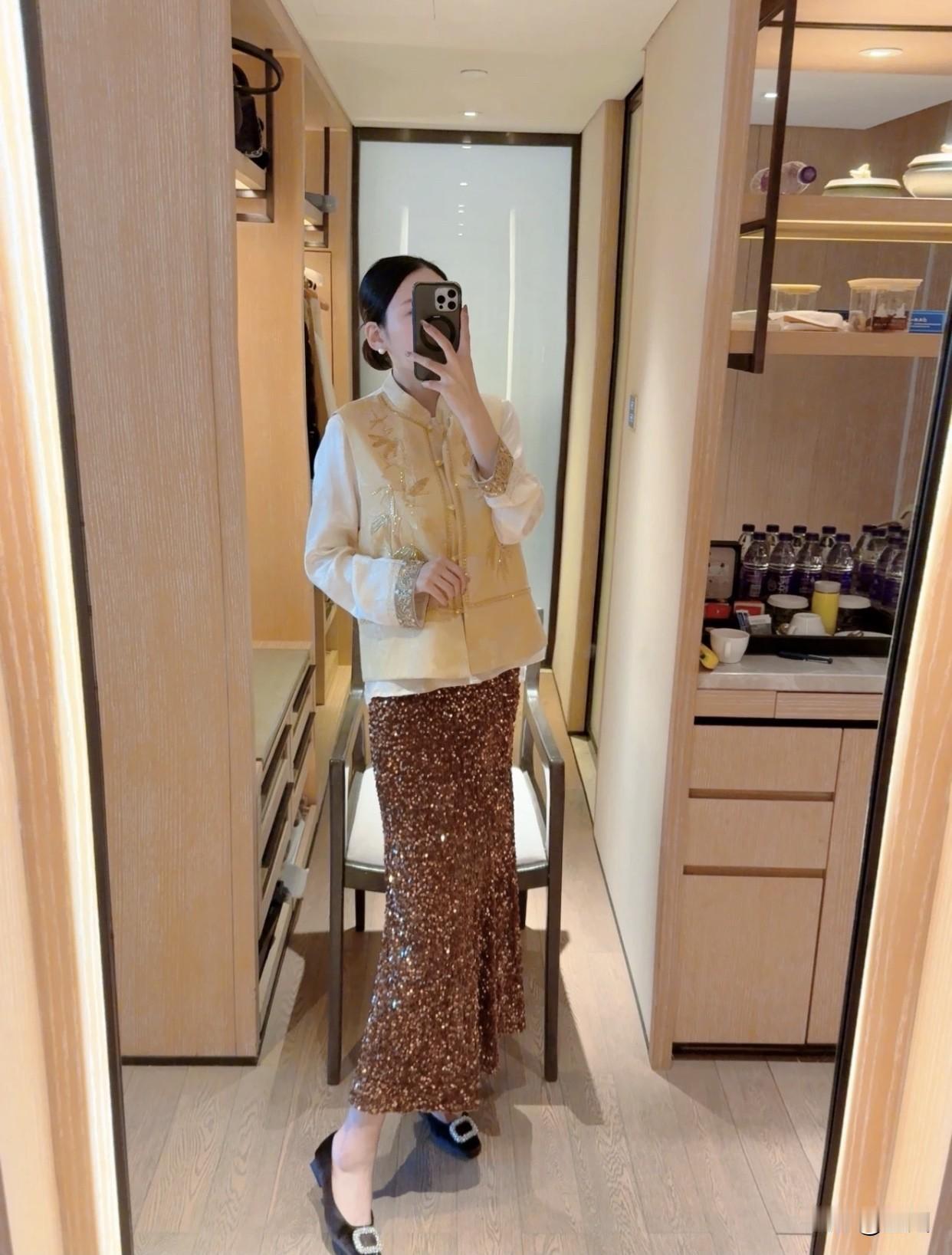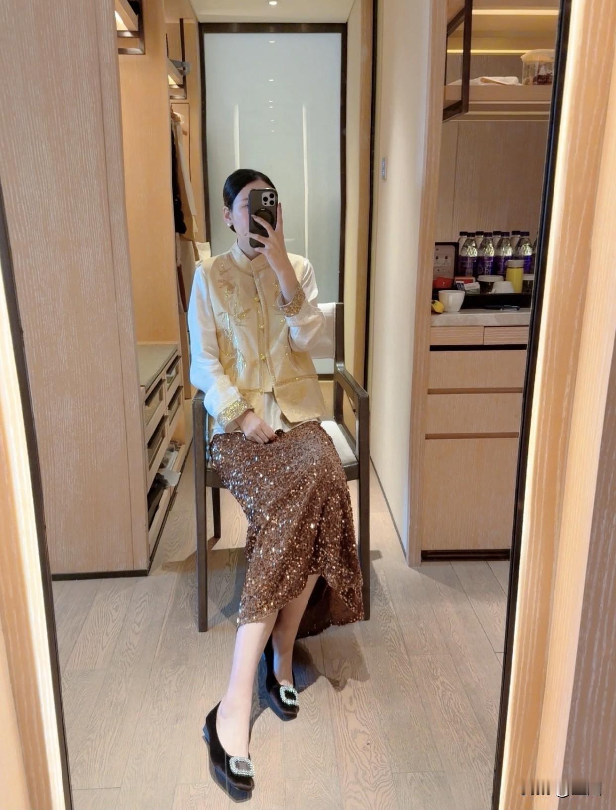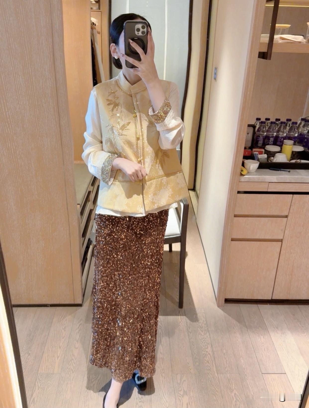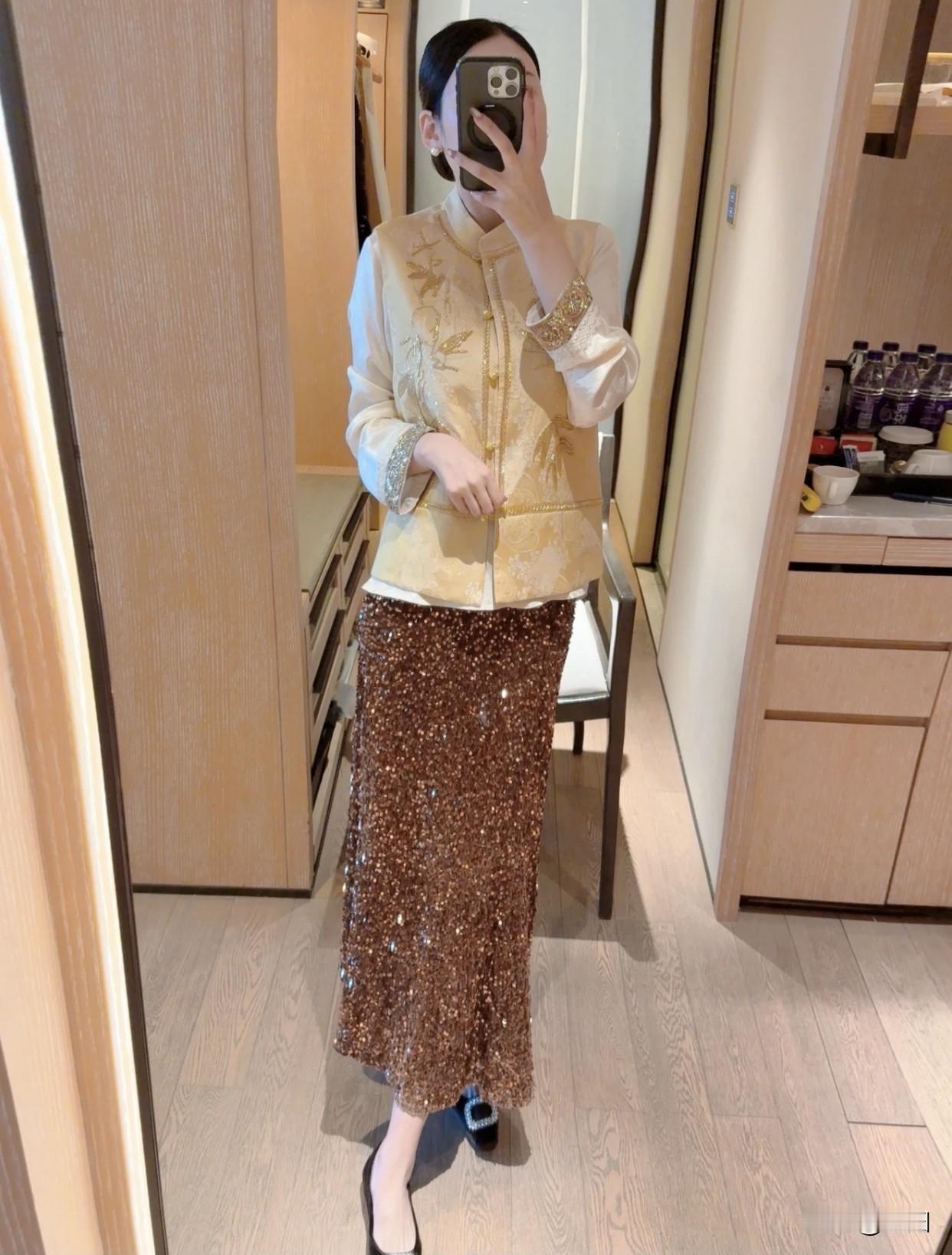有哪些令人眼前一亮的裙装穿搭优雅复古风,金色刺绣上衣搭配闪亮长裙,尽显华丽气质!