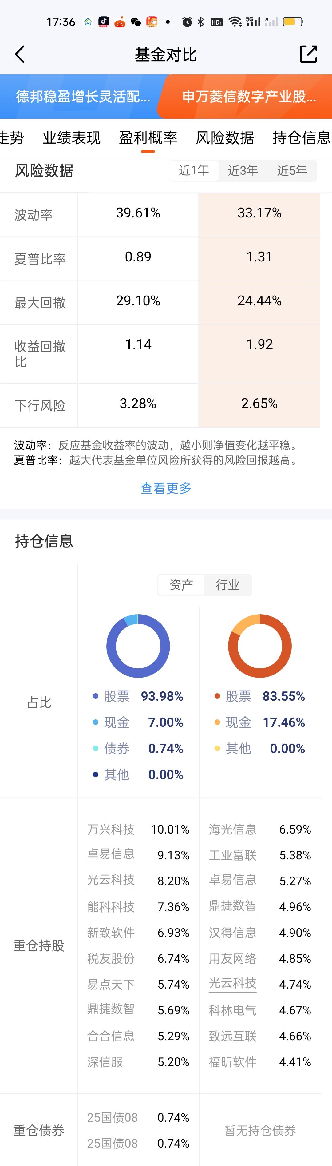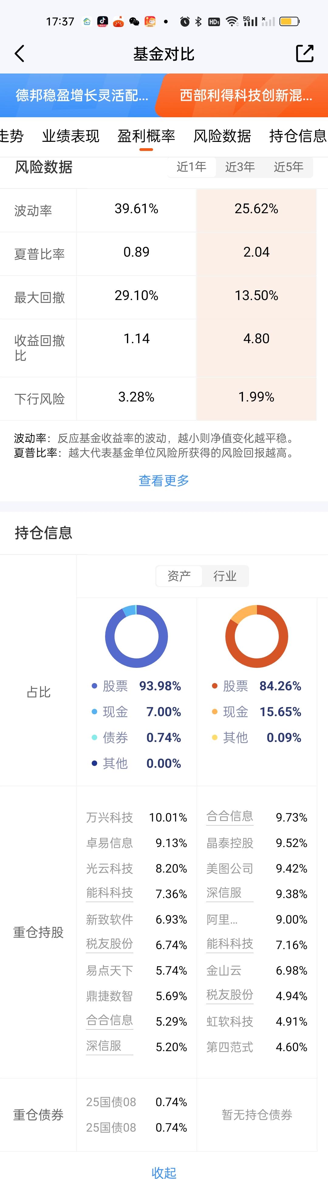 两个潜在的对手现在来看还是很有实力的,特别是西部利得科技创新最大回撤只有13.50%,收益率还做的相当不错,这个就了不得了。假以时日必定会给德邦稳盈带来巨大压力。其它的我们等下周末各只基金的最新持仓出来以后再进行分析和数据对比。