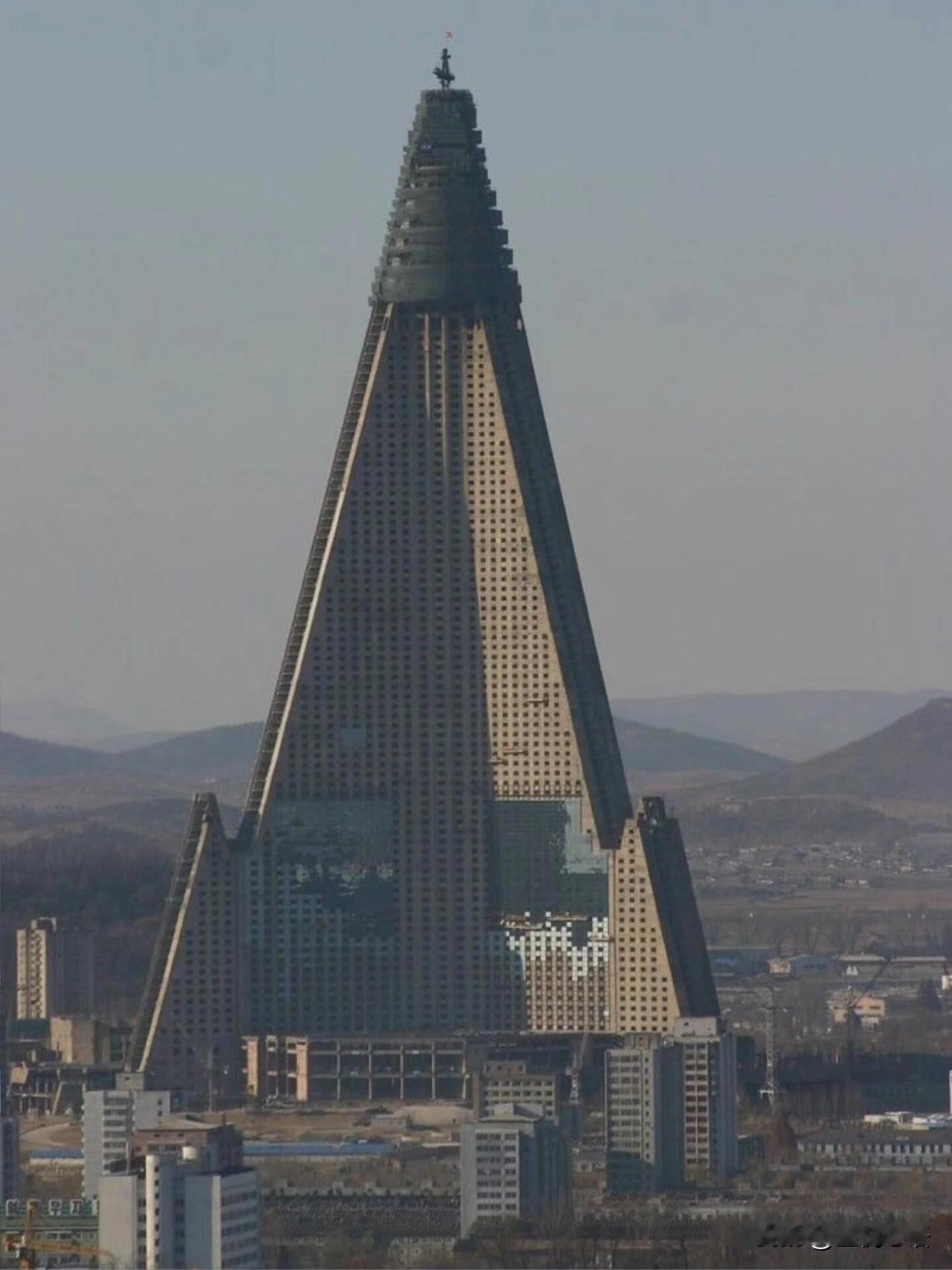 世界上最大的烂尾楼,居然在朝鲜! 平壤这栋“星际战舰”, 已经烂尾30多年了, 原定平壤柳京酒店, 由于资金原因,一直未完工。 330米高的金字塔造型, 远看像一艘外星战舰, 1987年就动工想冲“全球最高酒店”, 结果建到一半资金断了, 这一烂尾就是几十年。 后来贴了玻璃幕墙,颜值更科幻了, 可直到现在还没正式营业, 妥妥的世界最大“烂尾楼”实锤! 有人说可惜,有人觉得霸气, 我倒觉得挺唏嘘的—— 曾经的雄心壮志,被现实按下暂停键。 但不得不说,这设计放在今天都不过时, 棱角分明、气场全开, 比好多千篇一律的高楼有记忆点。 有时候觉得建筑真有意思, 它不光是钢筋水泥,还藏着时代的痕迹。 这栋“未完成的传奇”, 反而成了平壤最特别的地标, 你们觉得它最终能正式开业吗?